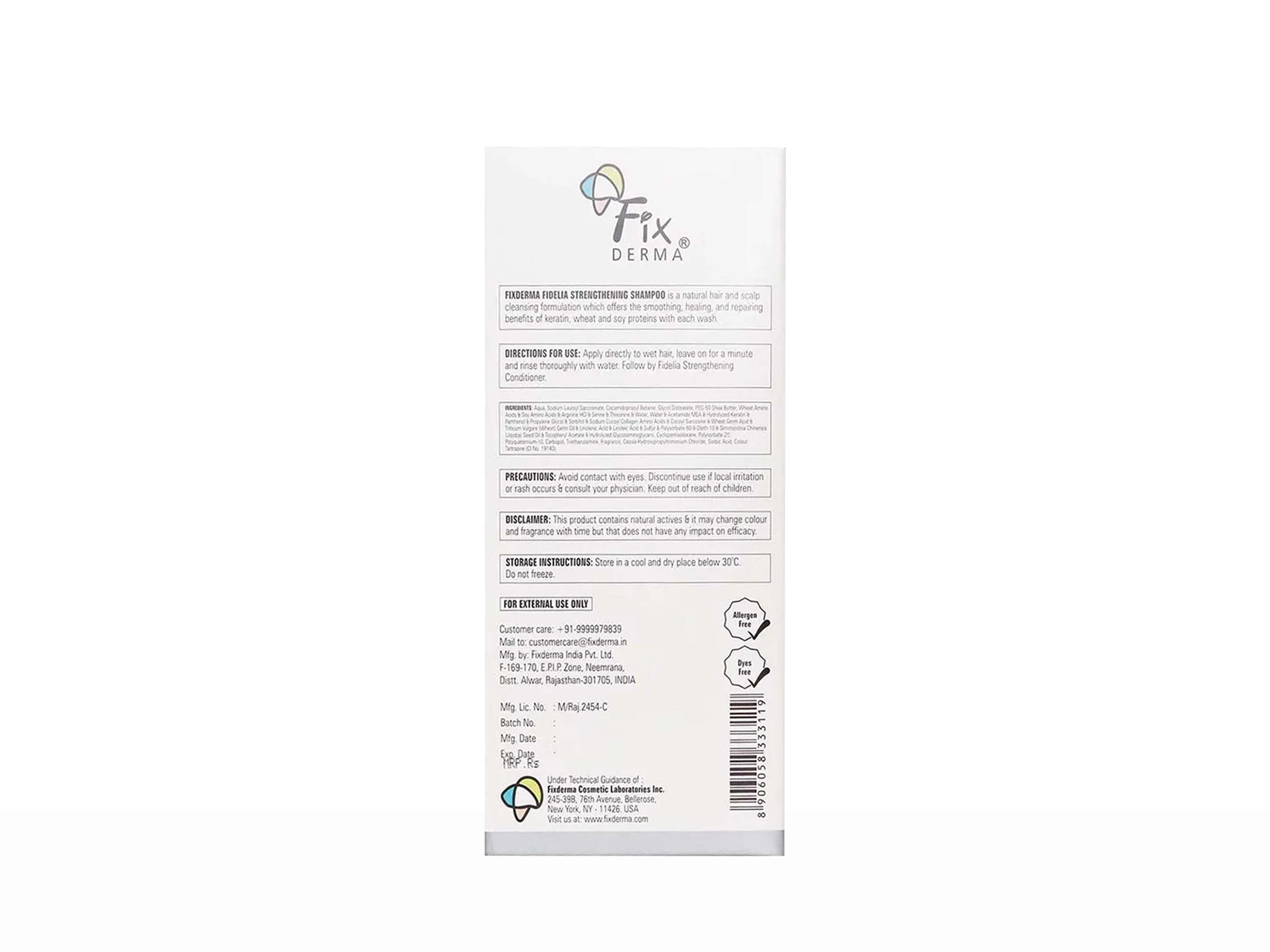 Fixderma Fidelia Strengthening Shampoo is a gentle, pH 5.5-balanced formula designed for dry, sensitive, and itchy scalps. Infused with hydrolyzed keratin, wheat protein, soy protein, and shea butter, it deeply nourishes and strengthens weak, damaged hair. This sulphate- and phthalate-free shampoo cleanses without stripping natural oils, restoring moisture and enhancing hair resilience. Ideal for daily use, it soothes irritation, repairs protein loss, and revitalizes brittle strands. Dermatologist-tested, it offers a safe and effective solution for restoring smoothness, volume, and keratin balance to stressed hair and scalp.