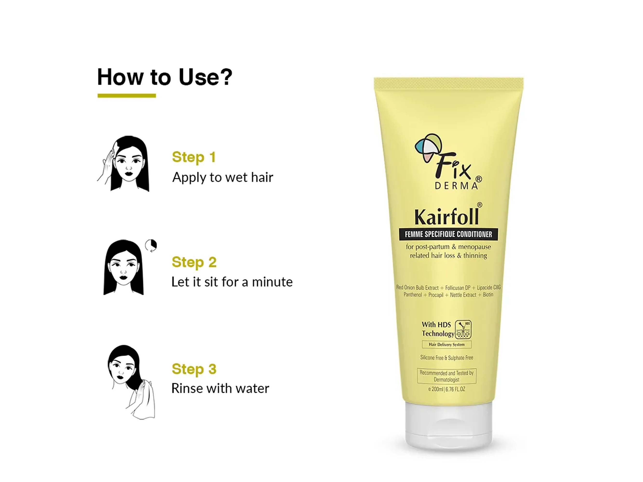 Fixderma Kairfoll Femme Specifique Conditioner is a targeted hair care solution for women to combat hair thinning and promote healthier, stronger hair.