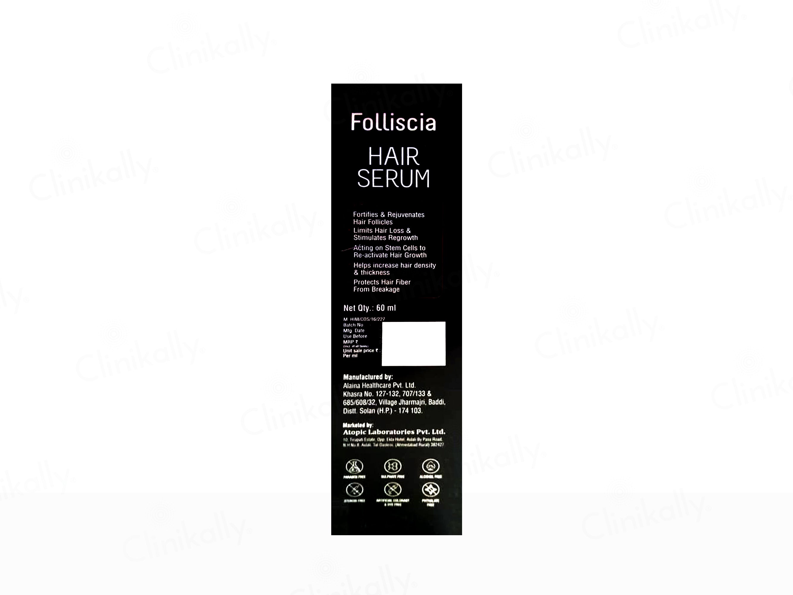 Folliscia Hair Growth Serum is generally well-tolerated, but some users may experience mild irritation, dryness, or redness initially.