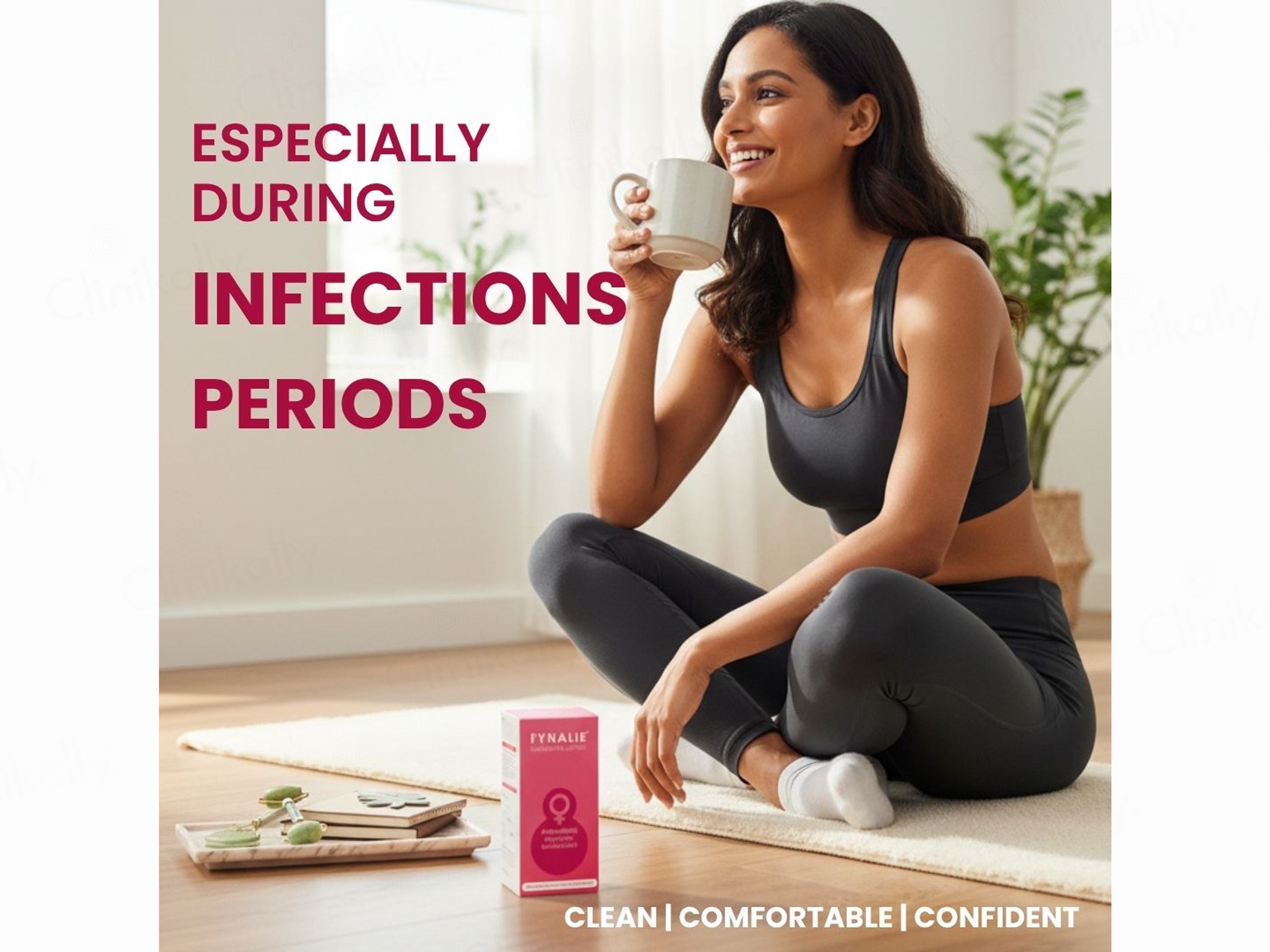 Fynalie Intimate Cleansing Lotion is a gentle, no-rinse, pH-balanced (pH 3.5) intimate cleansing lotion specially formulated for women's intimate hygiene to maintain natural microbiota balance, soothe sensitive skin, provide lasting moisture, and offer effective yet mild cleansing without foam, perfume, essential oils, or harsh extracts; powered by AmTenBioDis Prebiotic Technology, it supports beneficial bacteria while gently removing impurities, prevents irritation, dryness, or discomfort, and is ideal for daily use on the intimate area to promote freshness, comfort, and healthy pH equilibrium. Key ingredients include prebiotic Alpha Glucan Oligosaccharide to nourish and balance the intimate microbiome, along with soothing and moisturizing agents like Cetyl Alcohol, Sodium Cocoamphoacetate, Acacia Senegal Gum, Xanthan Gum, and Lactic Acid for gentle cleansing, hydration, and pH support in a leave-on, non-irritating 3.5 pH formula.