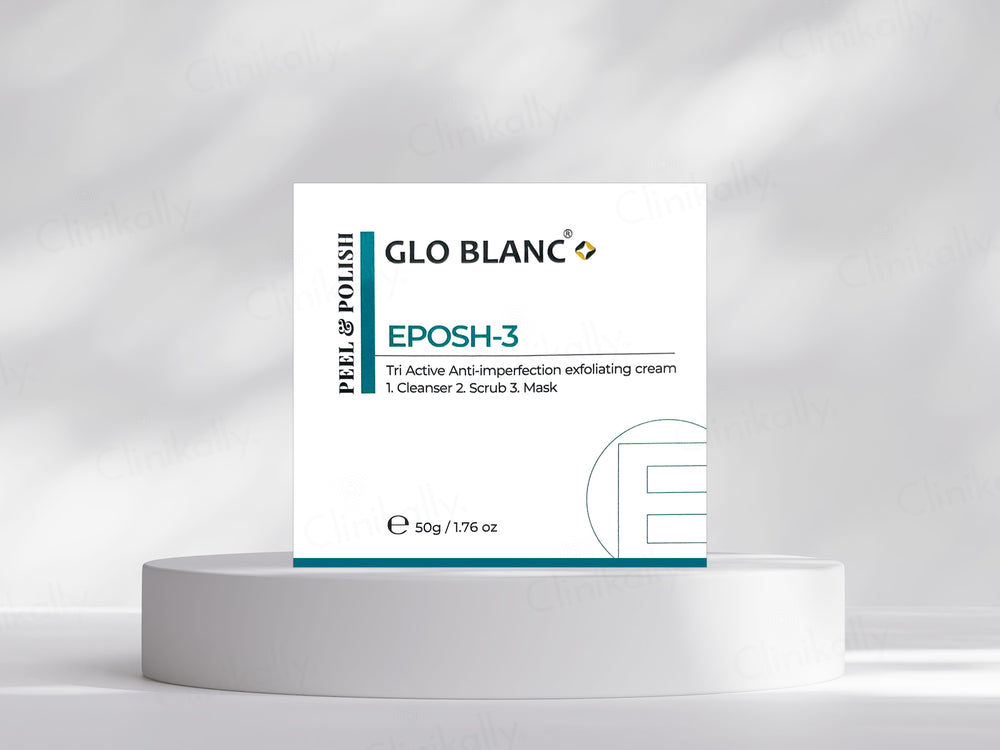 Glo Blanc Eposh-3 Tri Active Exfoliating Cream Cleanser is a luxurious exfoliating cleanser that deeply cleanses and rejuvenates the skin, combining Glycolic Acid, Salicylic Acid, and Lactic Acid.