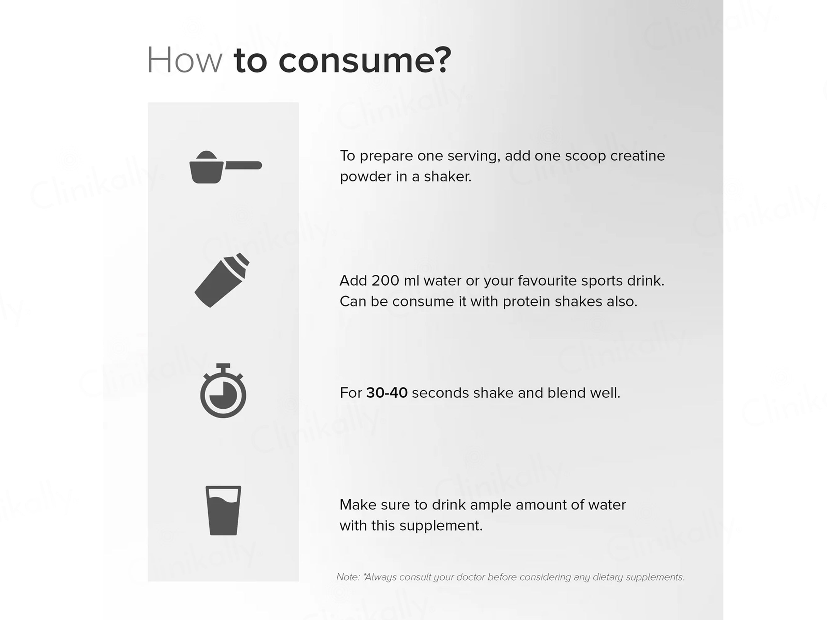 - Mix one scoop with water or your preferred beverage, stir well until dissolved, and consume daily or as recommended by your healthcare professional.