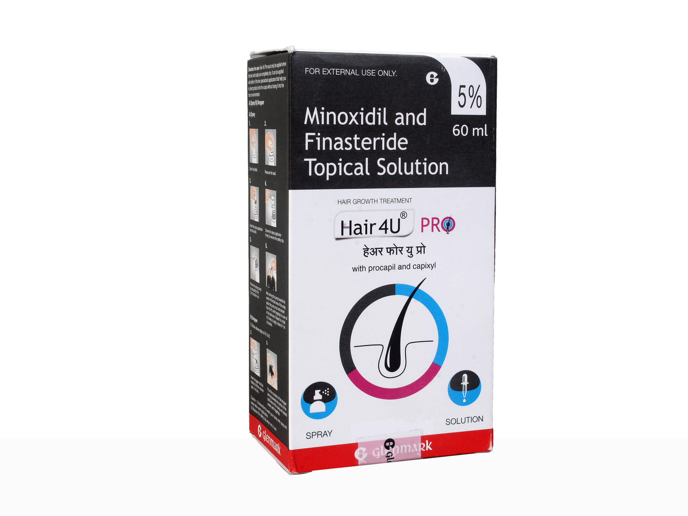 Hair 4U Pro 5% Solution is a trusted remedy for hair loss and baldness. Featuring Minoxidil and Finasteride, it effectively promotes hair regrowth, especially in men suffering from male pattern baldness. This easy-to-apply solution revitalizes hair follicles, increasing hair density and thickness. It's a reliable choice for regaining a fuller, more youthful head of hair and boosting self-confidence.