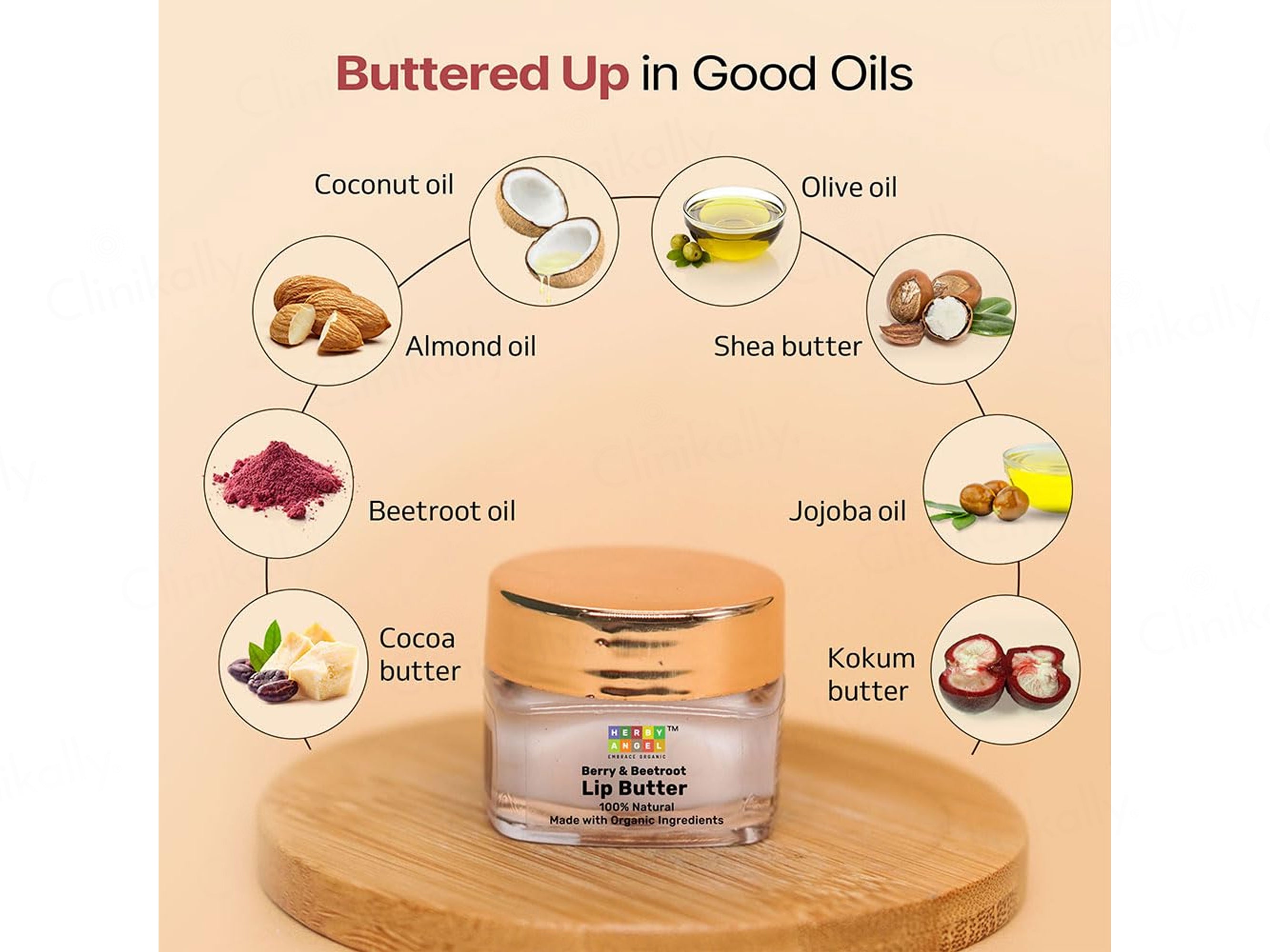 • Apply a small amount of Herby Angel Berry & Beetroot Lip Butter Balm evenly on the lips and reapply throughout the day as needed.