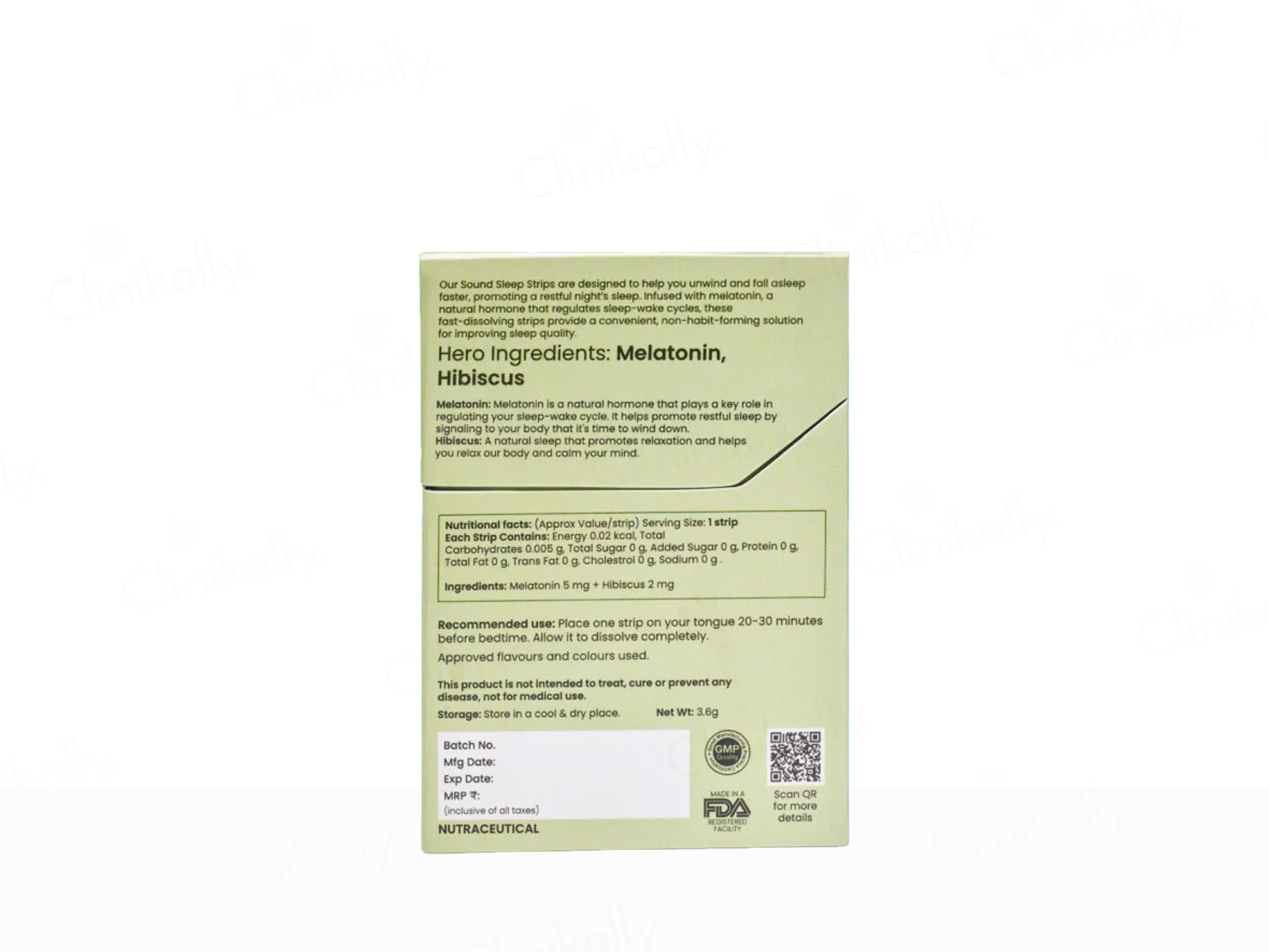 HII Health Inside It Sound Sleep Oral Strip – Elaichi Flavour is a fast-absorbing sleep support supplement designed to promote sound sleep, deep relaxation, and refreshed mornings through a convenient oral strip format. This restful sleep solution is formulated with key ingredients such as Melatonin to help regulate the natural sleep-wake cycle and improve sleep quality, and Hibiscus to support relaxation and calm the mind, aiding quicker sleep onset. The oral strip technology enables rapid release and fast absorption of active ingredients when placed on the tongue, making it easy to use without water and ideal for nighttime routines. With its soothing elaichi flavour and easy-to-dissolve format, this supplement supports effortless sleep preparation, helps reduce sleep disturbances, and promotes waking up feeling refreshed when used as recommended.