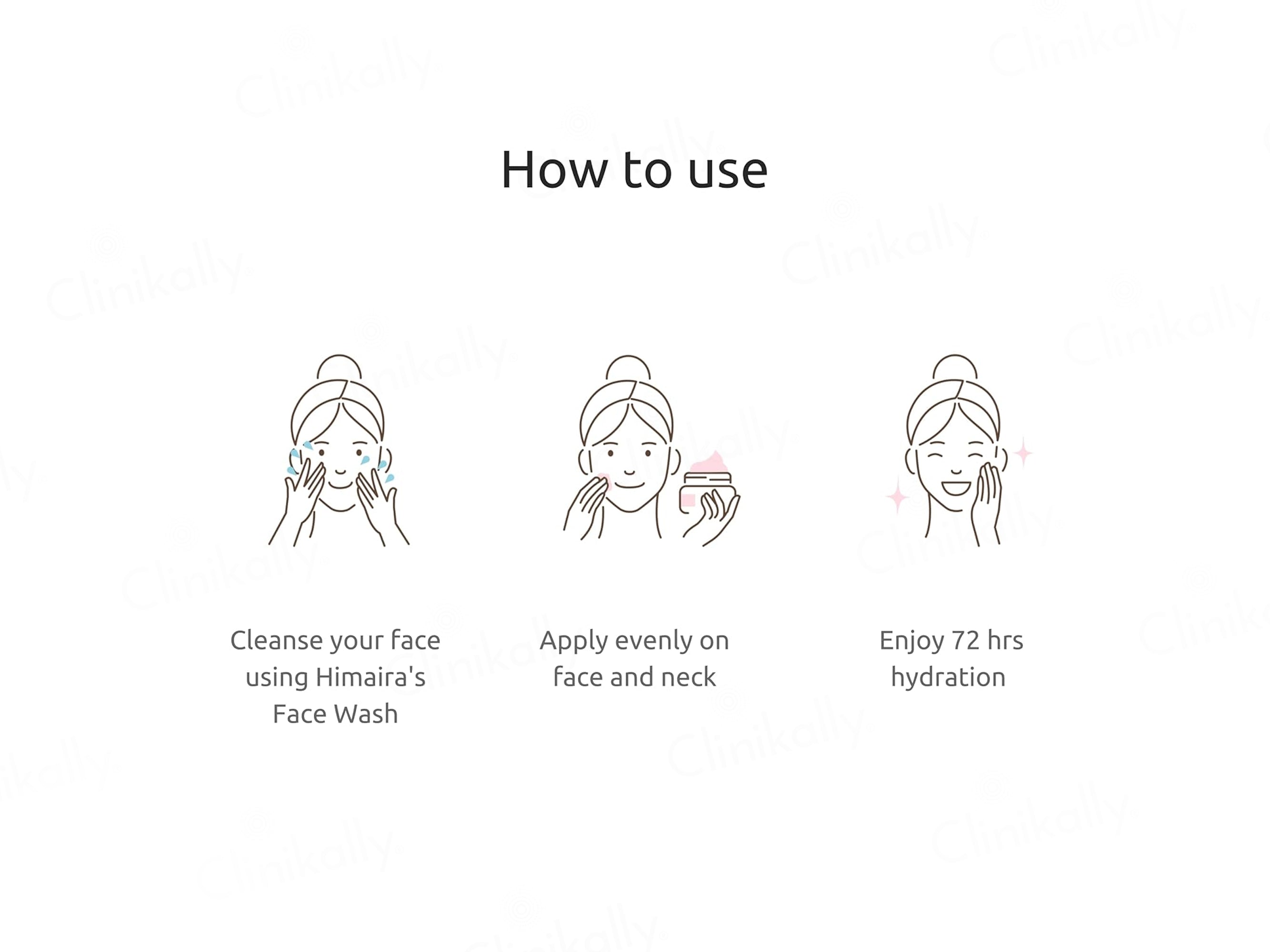 • After washing your face, apply Himaira Hydro Bomb 72 hrs Hydration Cream evenly on face and neck.