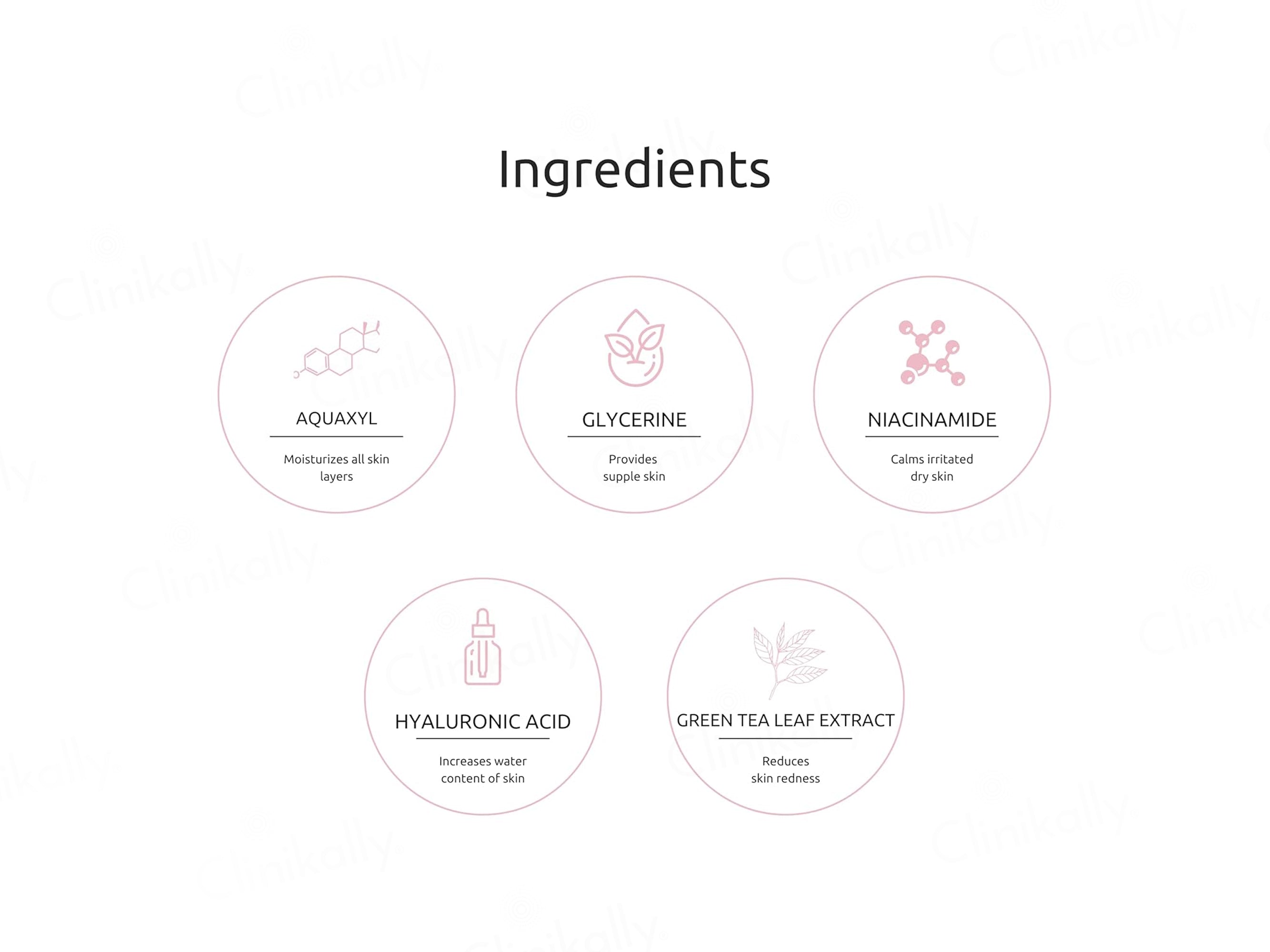 Key ingredients in Himaira Hydro Bomb 72 hrs Hydration Cream include hyaluronic acid, niacinamide, green tea, oat, and gotu kola extracts.