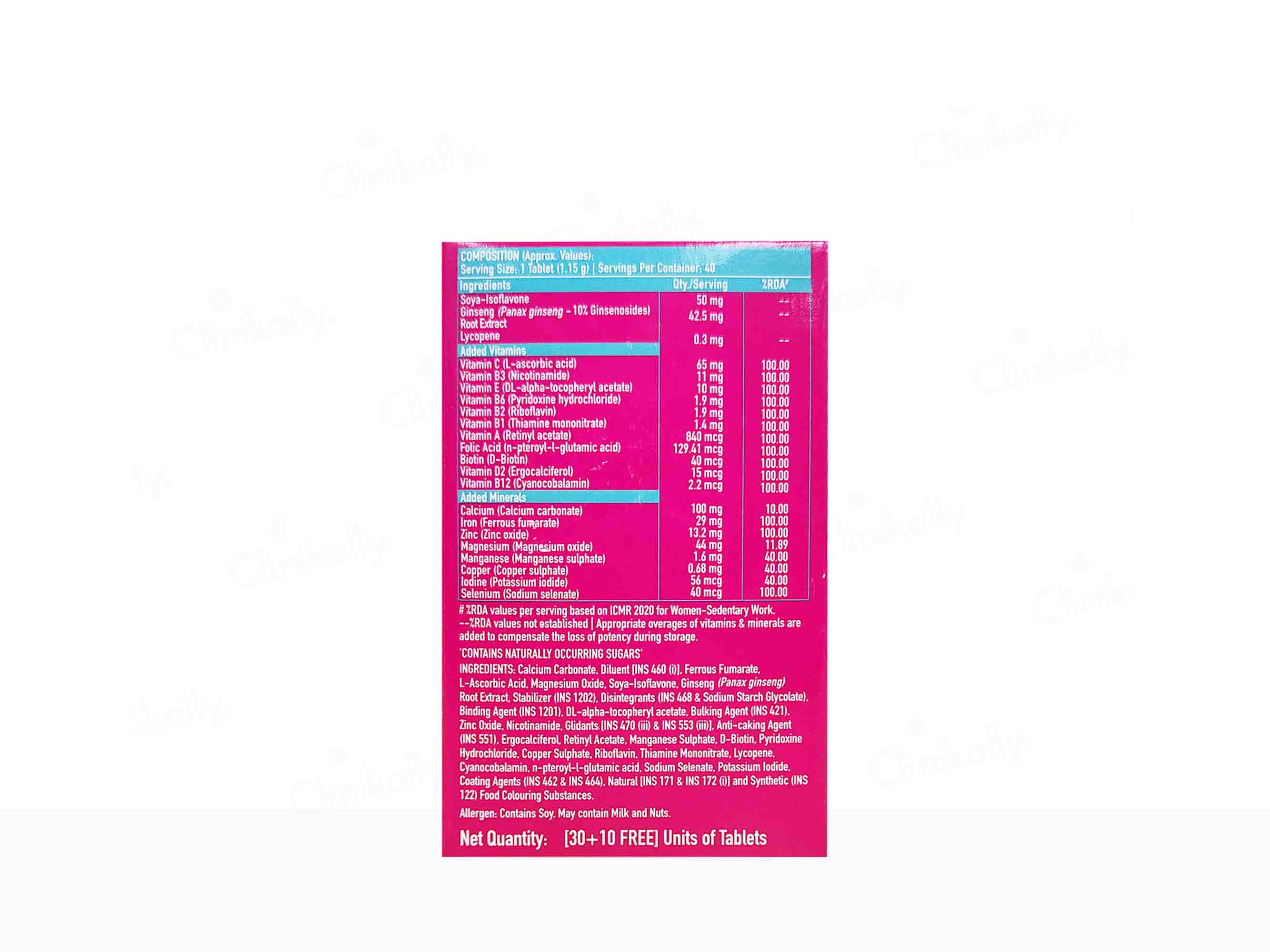 HK Vitals Multivitamin With Soya-Isoflavones, Lycopene & Ginseng Extract Tablet For Women