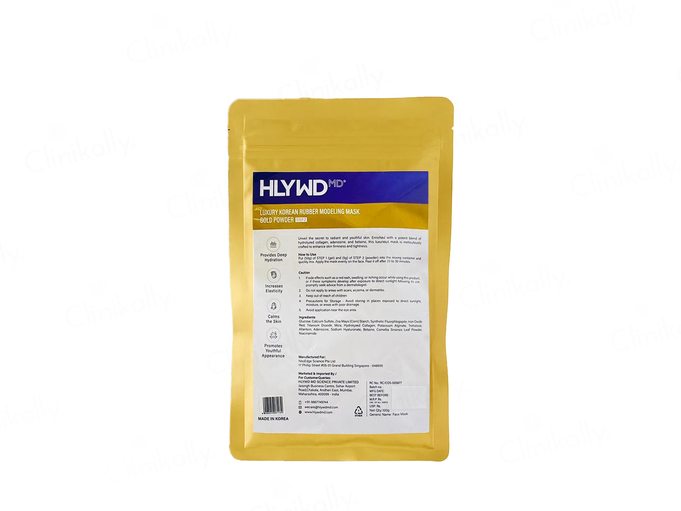 HLYWD MD Luxury Korean Rubber Modeling Mask Gold Gel (Step 1) + Powder (Step 2) Combo Kit