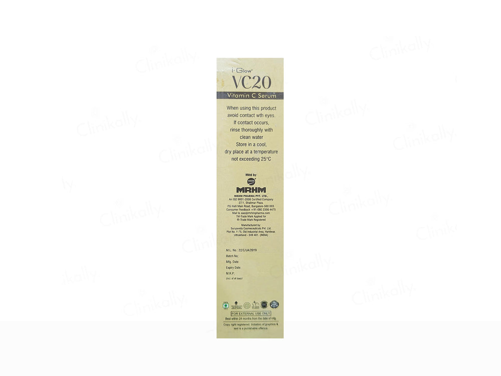I-Glow VC20 Vitamin C Serum is a powerful, high-performance skincare formula designed to brighten dull skin, reduce wrinkles, and fade crow’s feet with its potent 20% Sodium Ascorbyl Phosphate. This fast-absorbing, non-greasy serum penetrates deeply to boost collagen production, improve skin texture, and deliver a youthful, radiant glow. Enriched with Aloe Vera, Vitamin E, and Saffron Extract, it revitalizes tired skin while supporting cellular renewal. Perfect for anti-aging skincare routines, it helps achieve smoother, firmer, and more even-toned skin for a naturally luminous complexion.