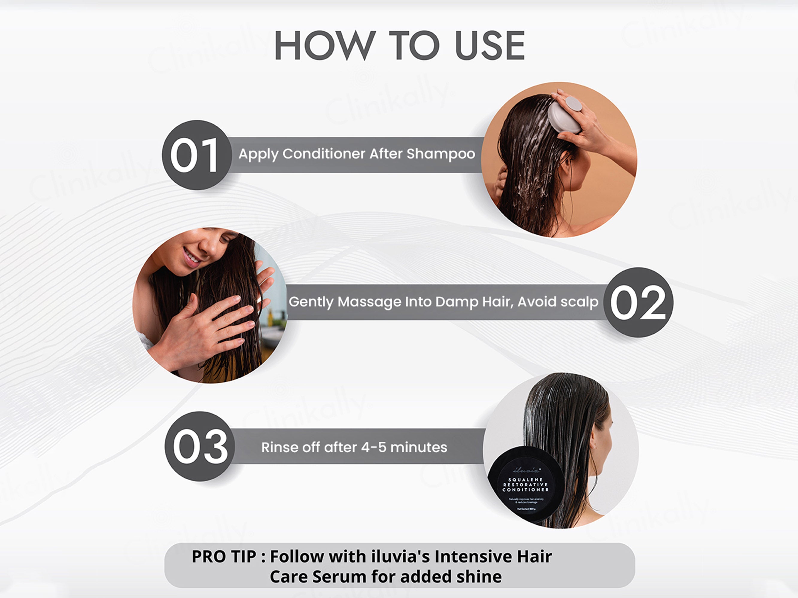 - Squeeze out excess water post-shampoo, apply generously, leave for 2-3 minutes, and rinse lightly.