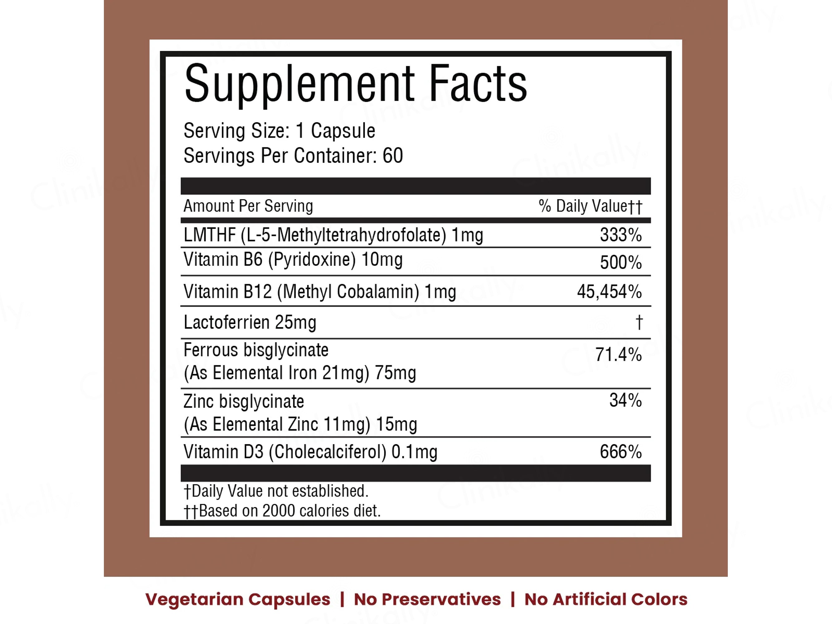- Provides active folate & gentle iron.