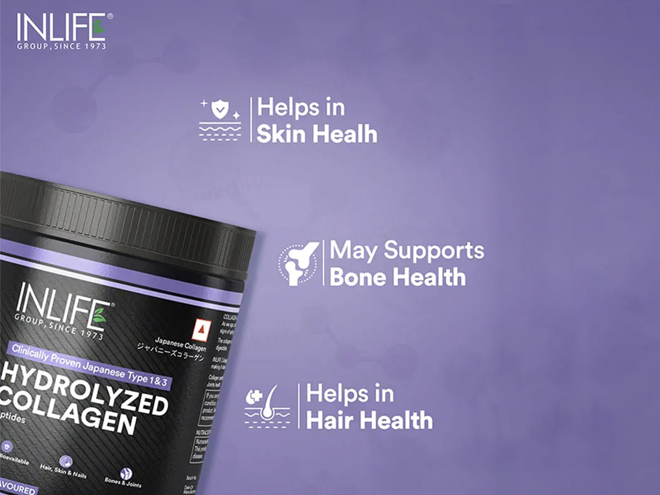 - Mix 1 scoop (10g) of Inlife Japanese Hydrolyzed Type 1 & 3 Collagen Peptides Nutraceutical Powder with water, juice, or your favourite beverage.