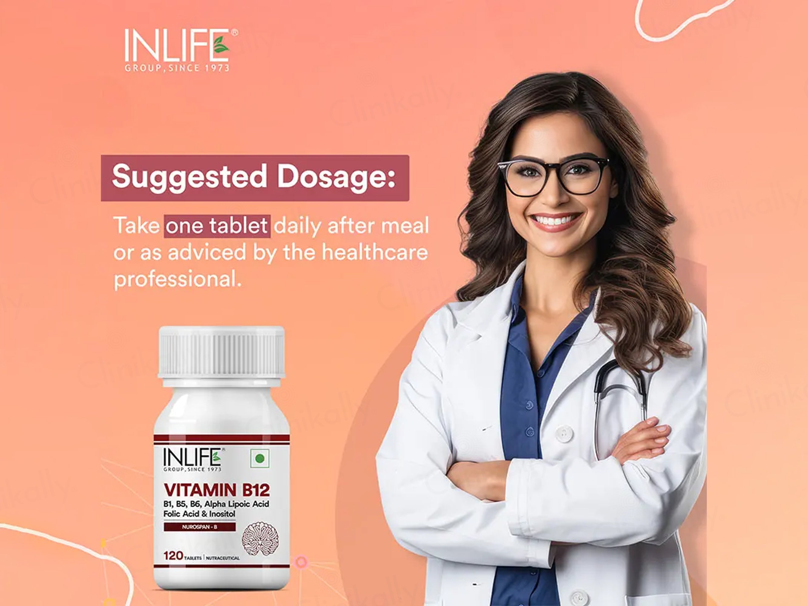 - Take 1 tablet of Inlife Nurospan-B Vitamin B12 Nutraceutical Tablet daily with water, preferably with a meal.
