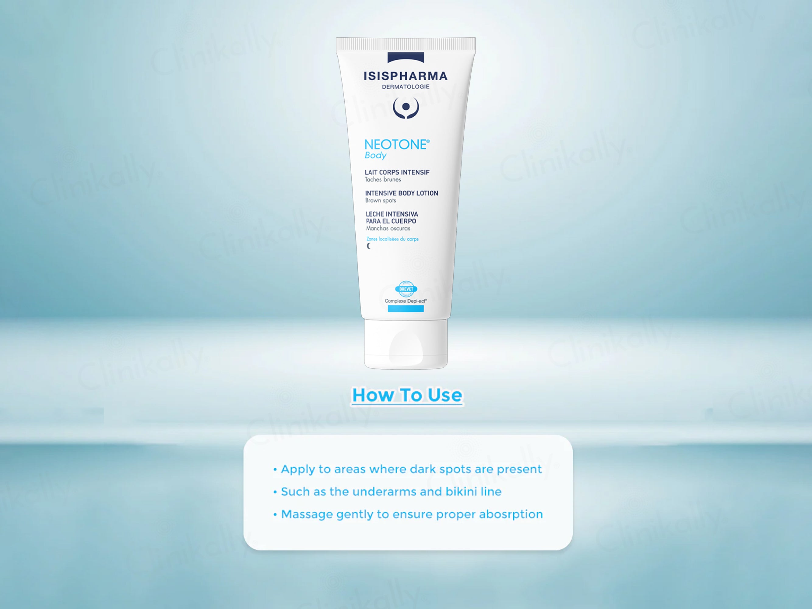 Apply daily to areas with dark spots; suitable for use in sensitive areas like underarms and bikini line.