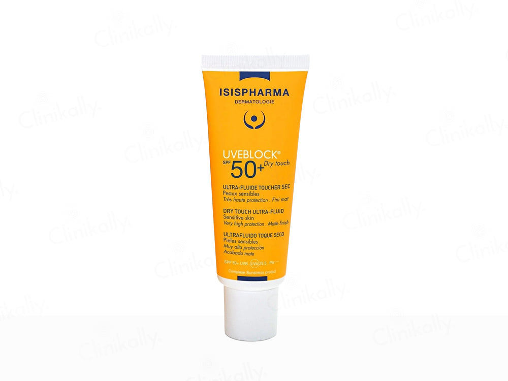 Isispharma UVE Block Dry Touch is a high-protection, ultra-fluid sunscreen designed to provide SPF 50+ and PA++++ protection with a matte finish, suitable for oily and acne-prone skin.