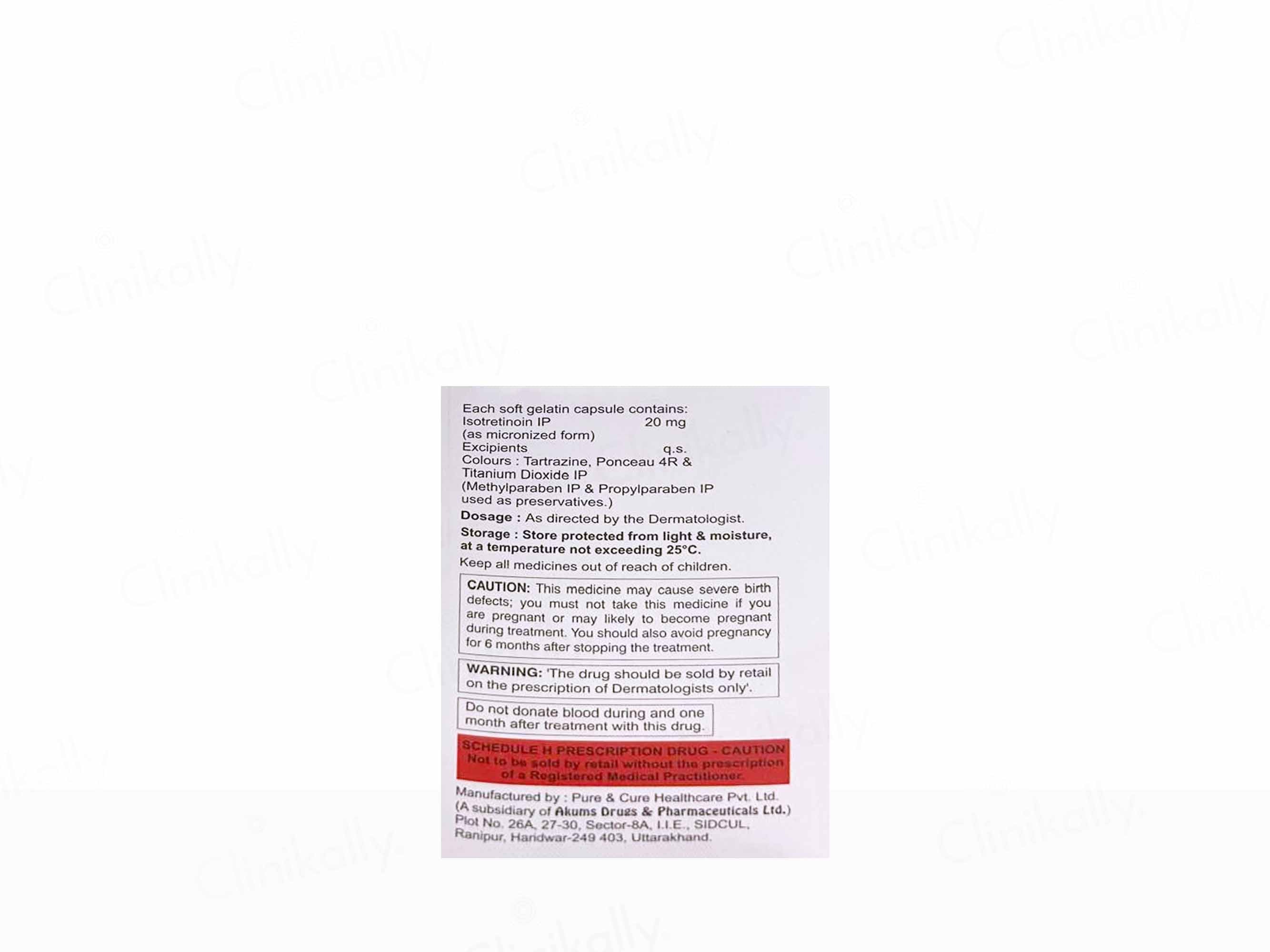 Isogud-20 Capsule contains isotretinoin, a potent retinoid medication used to treat severe acne, particularly nodular and cystic types that do not respond to other therapies. It works by reducing sebum production, shrinking sebaceous glands, and preventing clogged pores, thereby reducing inflammation and promoting clearer skin. Isogud-20 also aids in minimizing the formation of acne scars and preventing future breakouts. It is recommended for use under strict medical supervision to ensure safe and effective results.