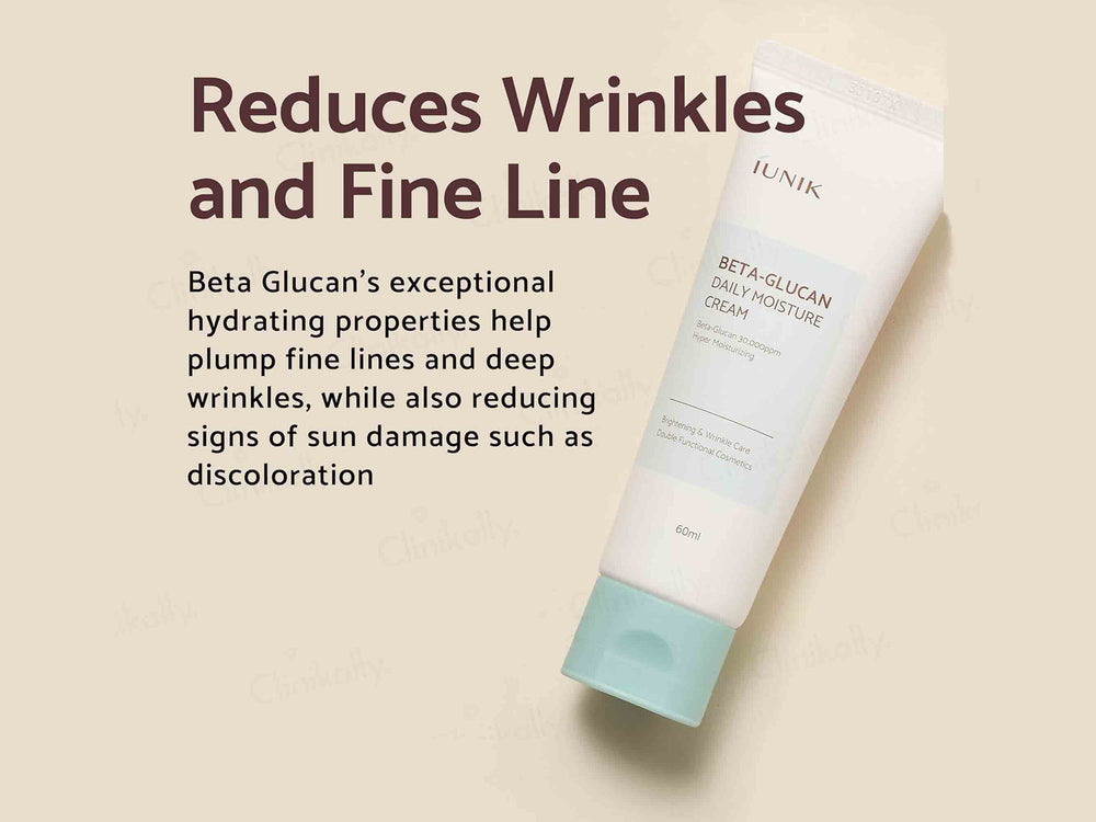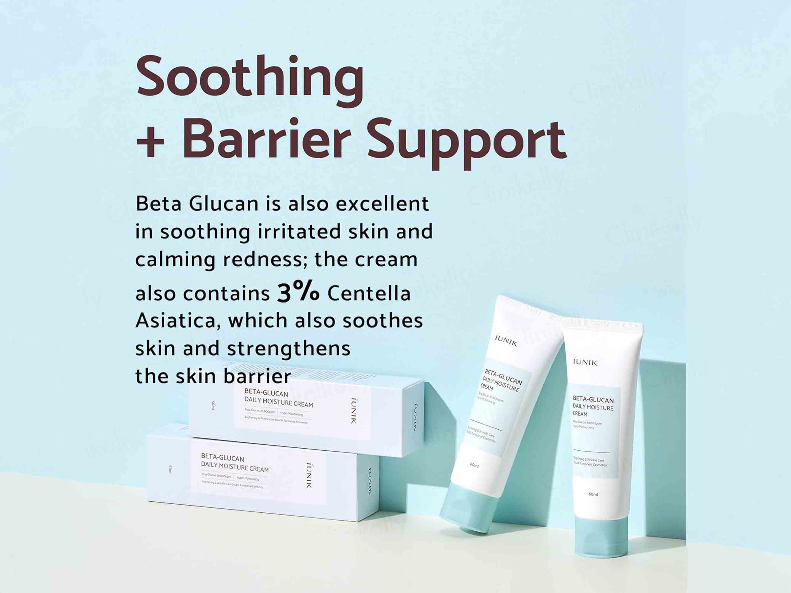 IUNIK Beta-Glucan Daily Moisture Cream is a deeply hydrating, skin-repairing moisturizer formulated with 30,000 ppm of Beta-Glucan, a powerful natural ingredient known for its superior moisture retention and soothing properties. Ideal for dry, sensitive, and irritated skin, it strengthens the skin barrier, promotes elasticity, and helps reduce redness. This lightweight yet nourishing cream also offers brightening and anti-wrinkle benefits, making it a perfect daily solution for improving overall skin tone and texture. Free from harsh chemicals and suitable for all skin types, it ensures a soft, calm, and revitalized complexion.