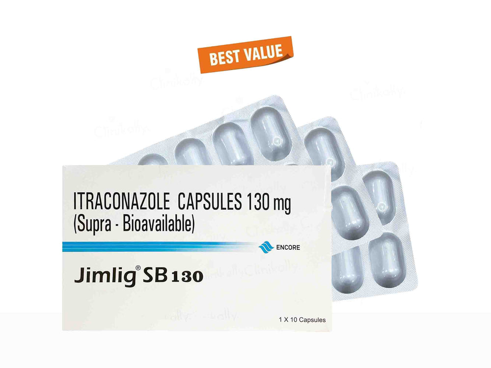 Jimlig SB 130 Capsule is an antifungal medication effective in treating various fungal infections including those affecting the mouth, throat, vagina, as well as fingernails and toenails. It operates by inhibiting the growth of fungi, targeting and destroying the fungal cell membrane. This action not only stops the spread of the fungi but also kills them, providing relief from the infection and promoting the healing of affected areas. It's a targeted treatment option for patients dealing with fungal infections in different parts of the body.