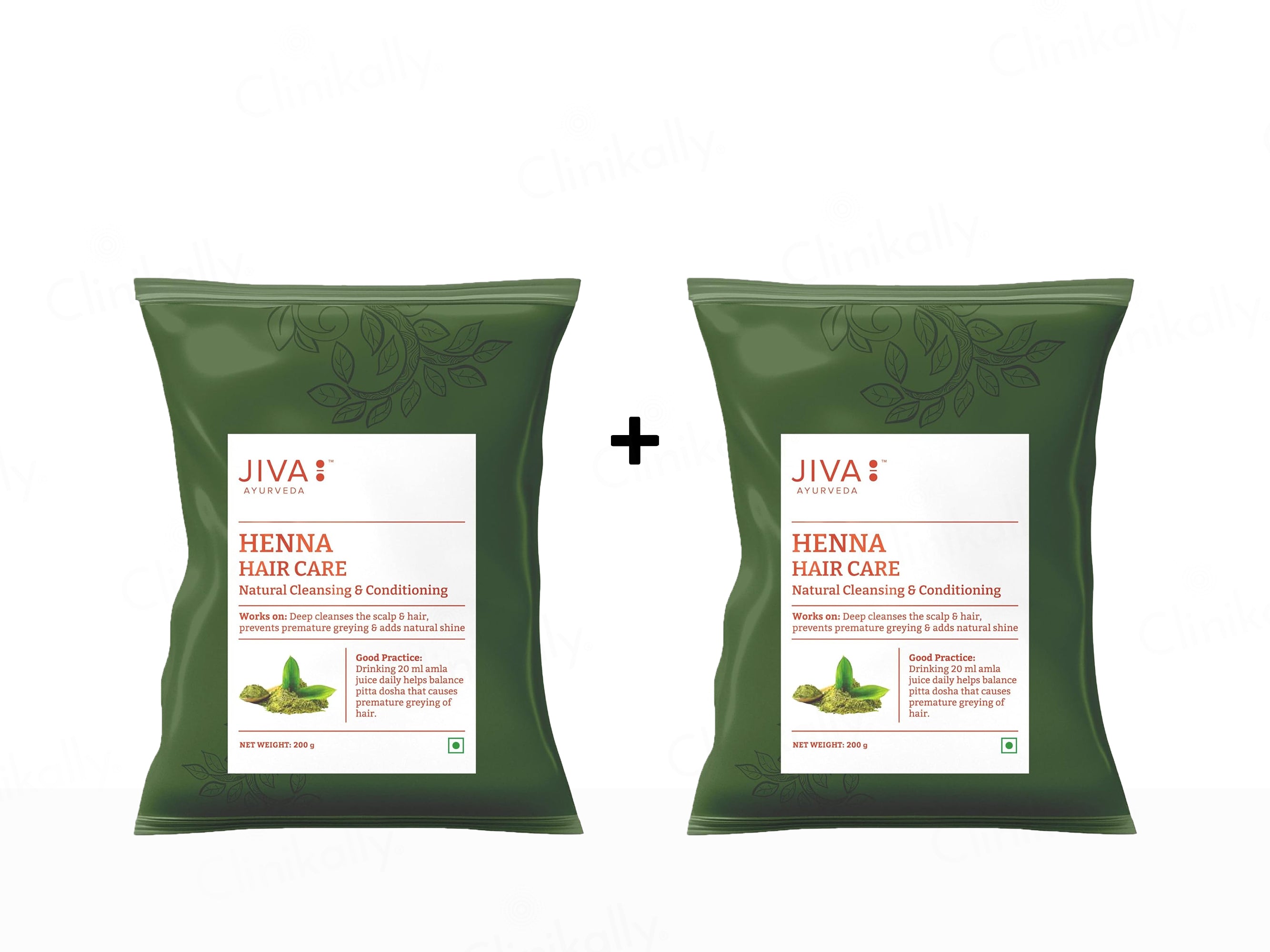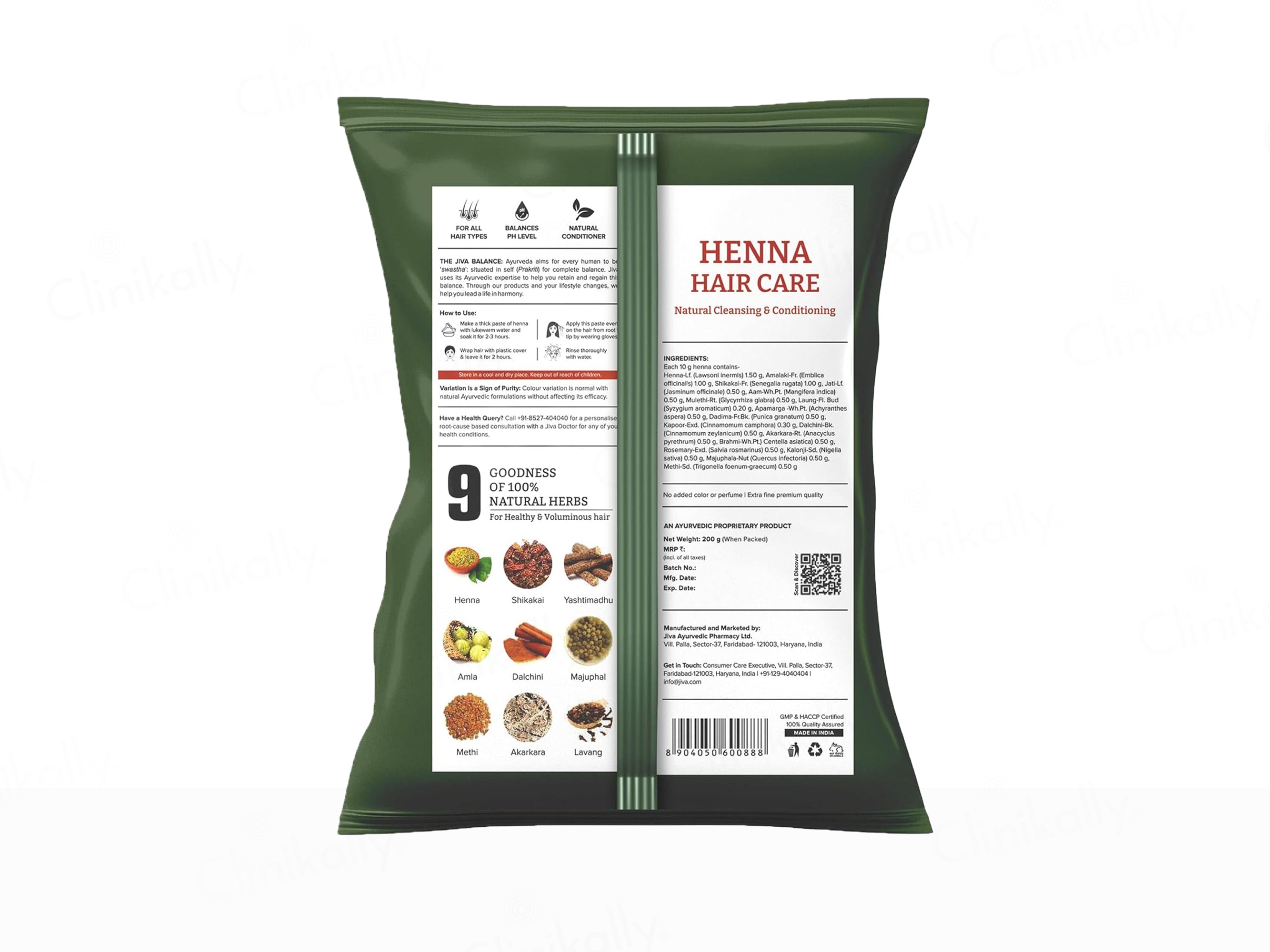 Jiva Ayurveda Henna Hair Care Powder is an Ayurvedic hair care formulation designed for natural cleansing and conditioning of the scalp and hair while helping add natural shine and support healthy-looking hair. This herbal powder works to deeply cleanse the scalp and hair, support conditioning, and help prevent premature greying through a blend of traditional botanical ingredients. The formula contains Henna Leaf, Amalaki Fruit, Shikakai Fruit, Jati Leaf, Aam Fruit, Mulethi Root, Laung Flower Bud, Apamarga Whole Plant, Dadima Fruit Bark, Dalchini Bark, Akarkara Root, Brahmi Whole Plant, Rosemary Extract, Kalonji Seed, and Majuphala Nut, which together help nourish the scalp, improve hair texture, and enhance the natural appearance of hair. Regular use of Jiva Ayurveda Henna Hair Care Powder helps maintain scalp cleanliness, supports softer and shinier hair, and provides herbal care for overall hair wellness.