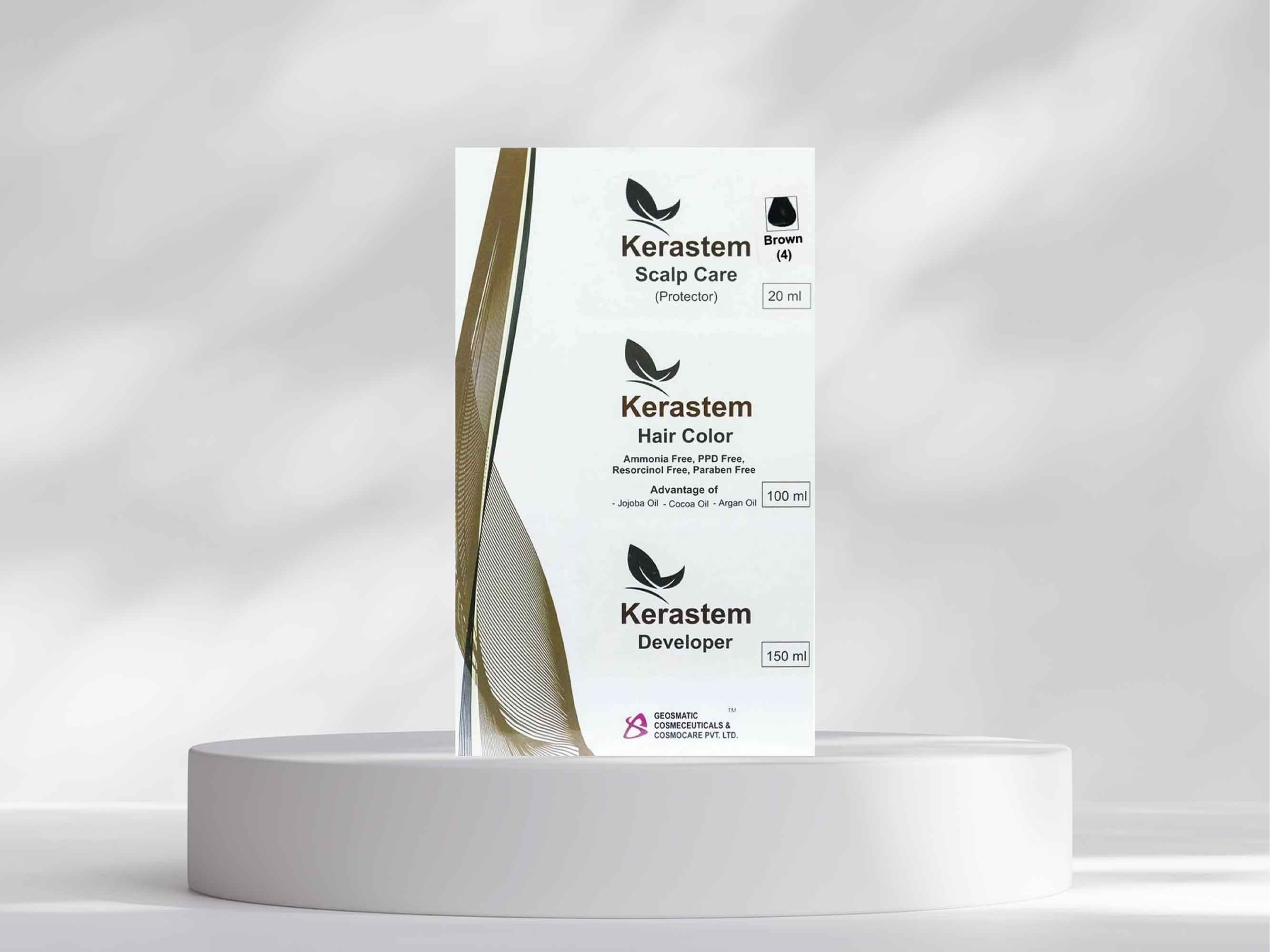Kerastem Hair Color 4 Brown is used to color hair, providing full coverage and strengthening hair follicles without staining the scalp.