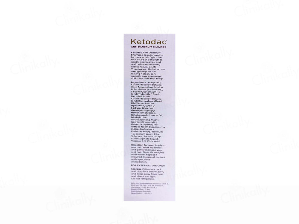 Ketodac Anti Dandruff Shampoo is a medicated shampoo formulated to treat and prevent dandruff by eliminating dandruff-causing fungi, reducing flaking, and soothing the scalp.