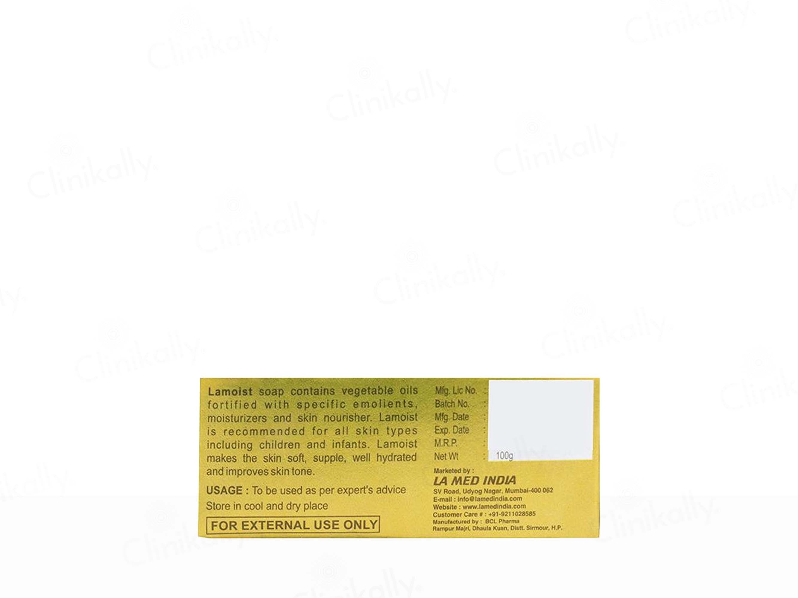 Lamoist Soap is a gentle, nourishing bathing bar enriched with almond oil, glycerin, and vegetable oils, making it ideal for all skin types, including infants and children. It deeply moisturizes and softens the skin, leaving it smooth, supple, and hydrated. Formulated with specific emollients and skin-nourishing agents, this soap enhances skin tone while maintaining its natural balance. Its mild and moisturizing formula helps prevent dryness and keeps skin healthy and glowing with every wash. Perfect for daily use, Lamoist ensures your skin stays fresh, radiant, and well-nourished.