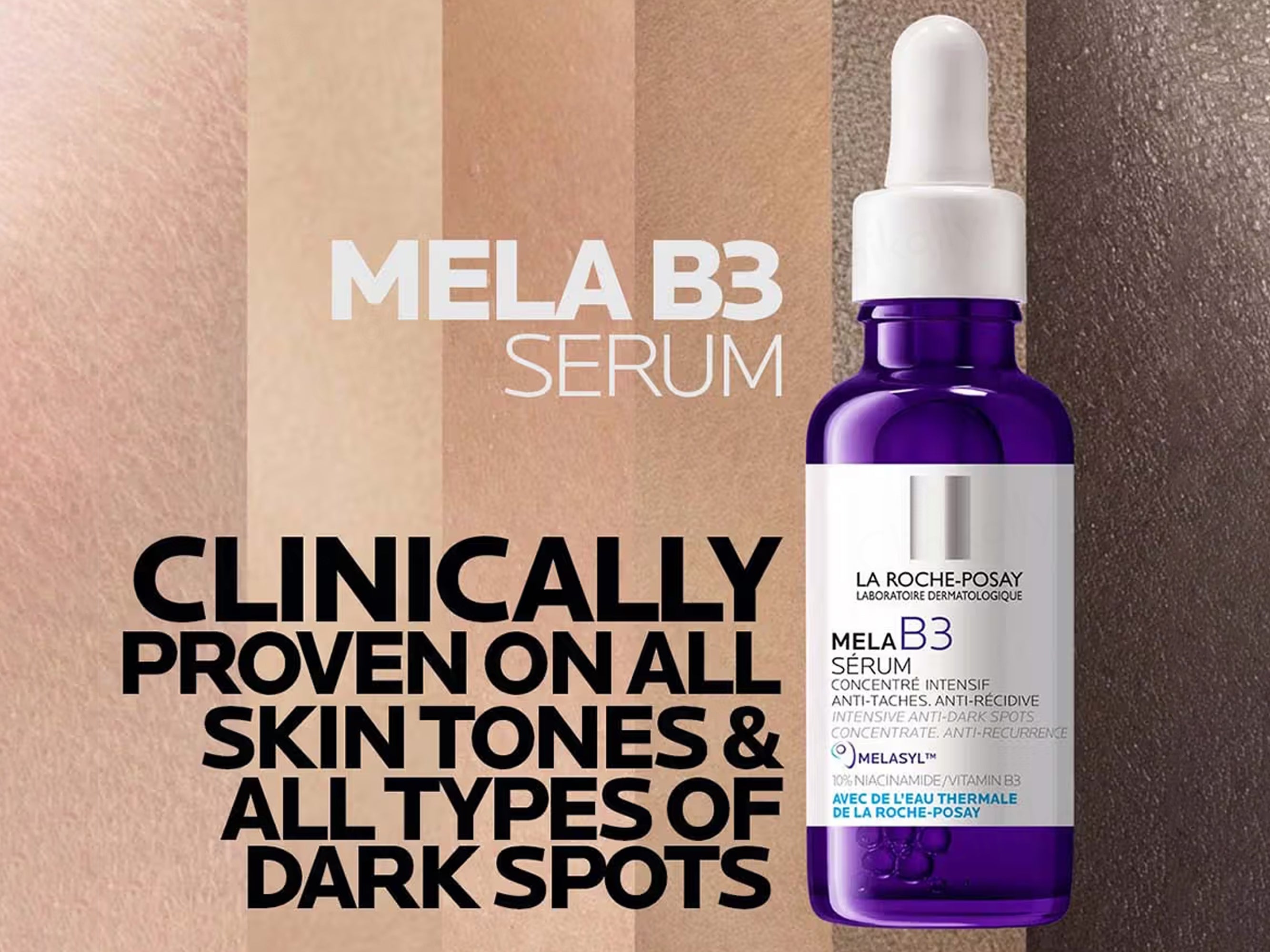 - Apply 2-3 drops of La Roche-Posay Mela B3 Anti-Dark Spots Serum evenly on cleansed face and neck morning and evening before moisturizer; follow with sunscreen during the day.