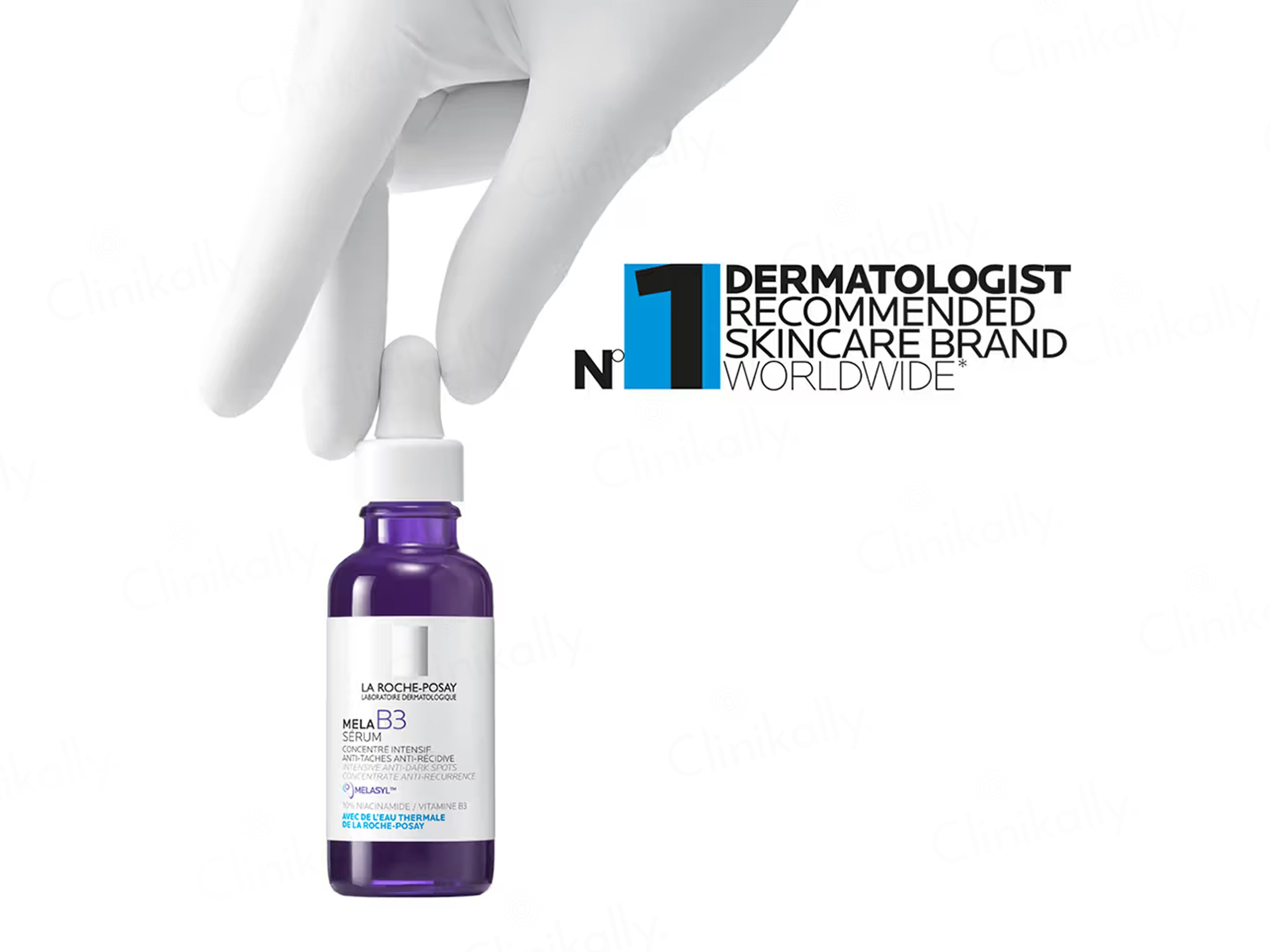 La Roche-Posay Mela B3 Anti-Dark Spots Serum is an intensive depigmenting concentrate formulated to visibly reduce persistent dark spots, post-acne marks, and uneven tone while preventing recurrence through advanced dermatological technology. Powered by Melasyl™ and Niacinamide (Vitamin B3), it targets excess melanin production and strengthens the skin barrier for improved radiance and clarity. The formula features Cystoseira Tamariscifolia Extract for antioxidant protection, Sodium Hyaluronate for deep hydration, Retinyl Palmitate to promote gentle cell renewal, and Tocopherol (Vitamin E) for enhanced skin resilience. Complemented by ingredients like Carnosine and Capryloyl Salicylic Acid, it refines texture and supports even-toned, luminous skin without irritation. Suitable for sensitive and dark-spot-prone skin, this lightweight serum combines efficacy with tolerance, making it ideal for daily use.
