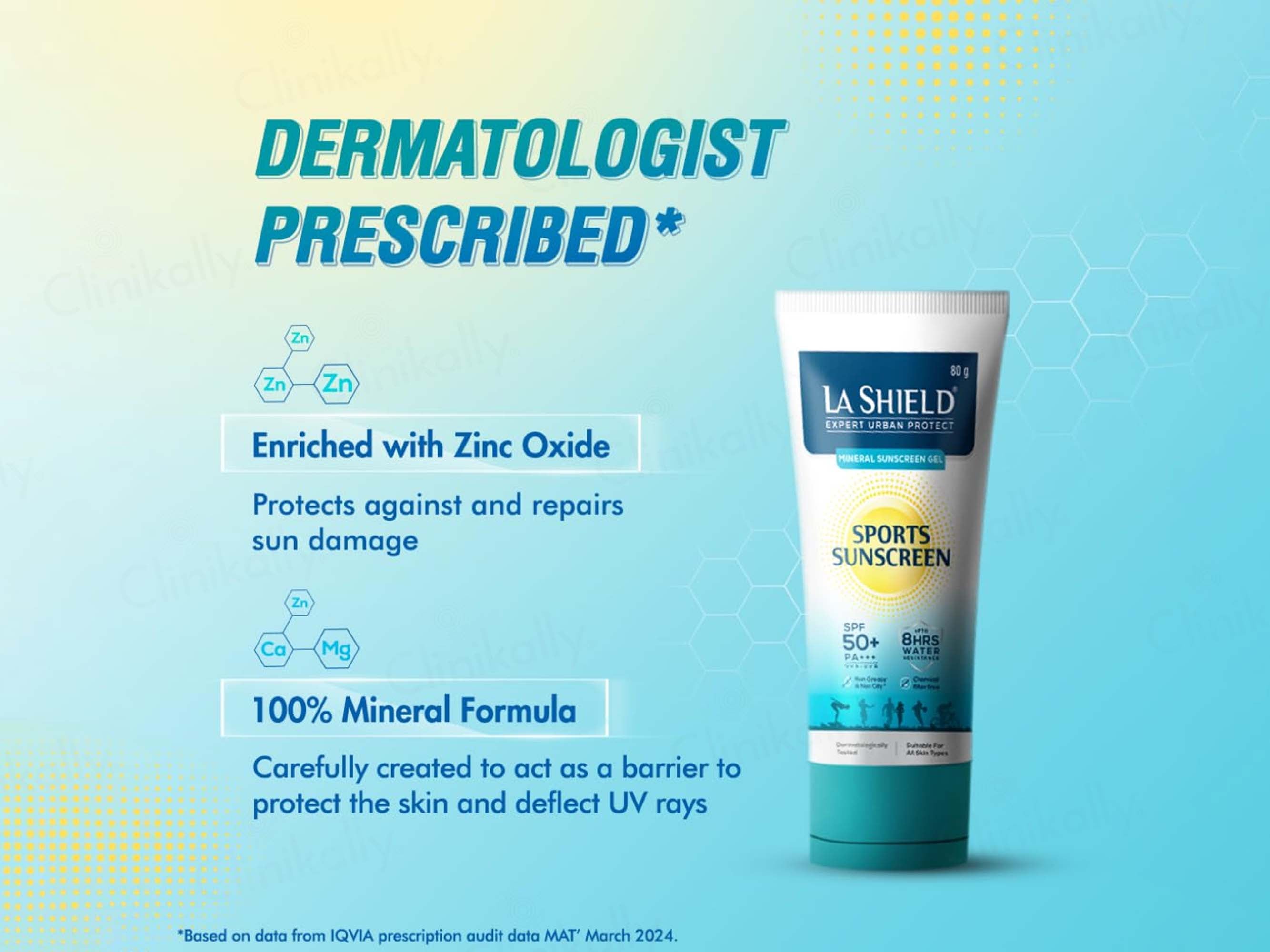 La Shield Expert Urban Protect Mineral Sports Sunscreen Gel SPF 50+ PA++++ is a 100% mineral-based sunscreen formulated to provide broad-spectrum protection against UVA and UVB rays. Designed for active lifestyles, it offers up to 8 hours of water resistance, making it suitable for water sports and outdoor activities. The lightweight, non-greasy gel sunscreen leaves no white cast and is free from chemical filters, parabens, sulfates, and fragrances, making it ideal for sensitive skin to achieve photoprotection.