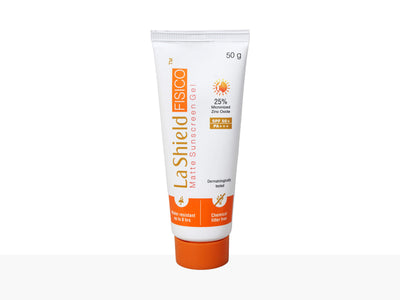 La Shield Fisico Matte Sunscreen Gel SPF 50+ PA+++ is a dermatologist-tested sunscreen gel with Helioplex technology, providing superior broad-spectrum protection against UVA and UVB rays with a non-greasy, matte finish.