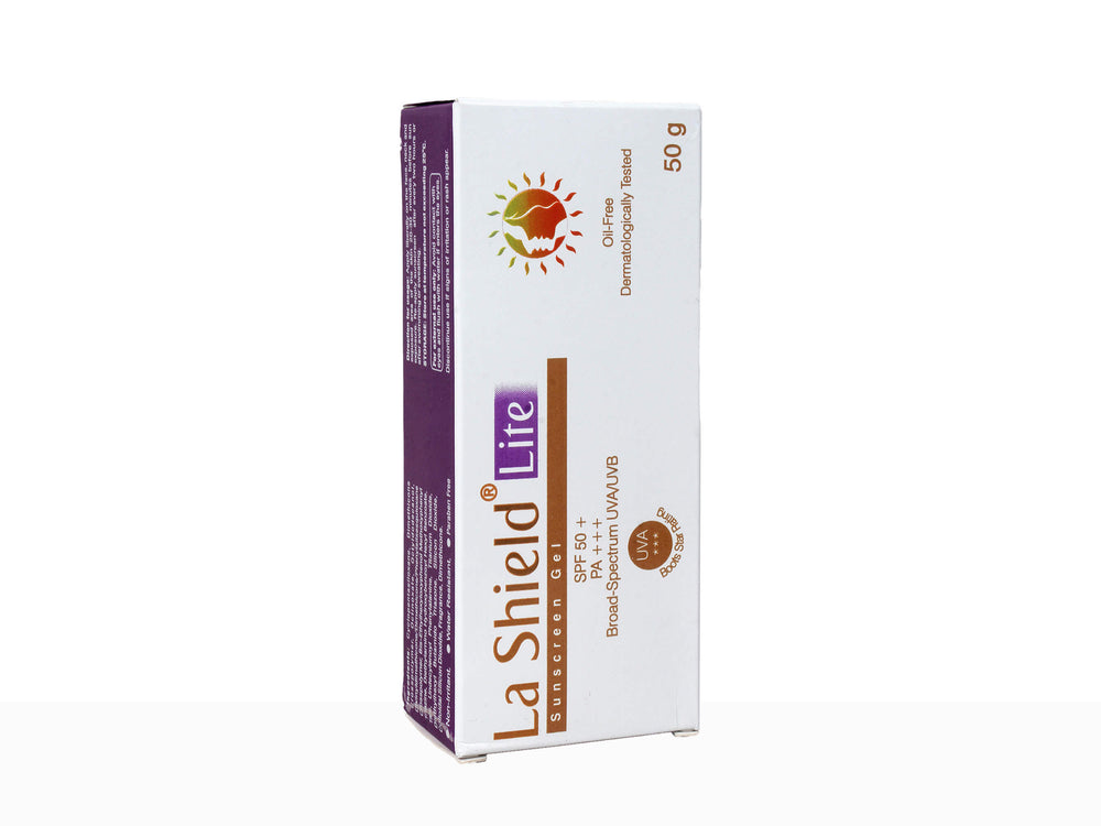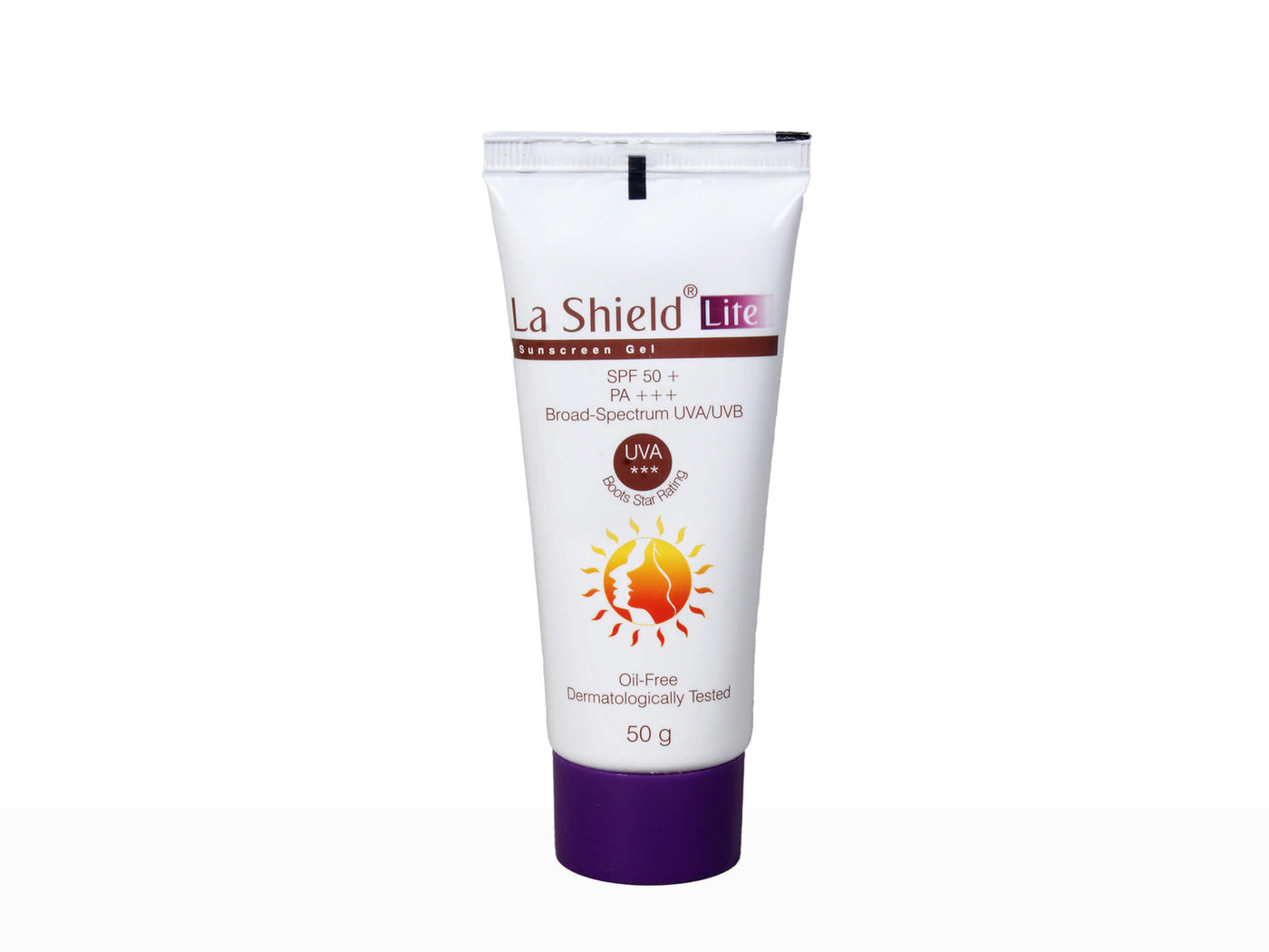 La Shield Lite Sunscreen Gel SPF 50+ PA+++ is a sun protection gel that blends into the skin without causing a mess and provides broad-spectrum protection against UVA and UVB rays.