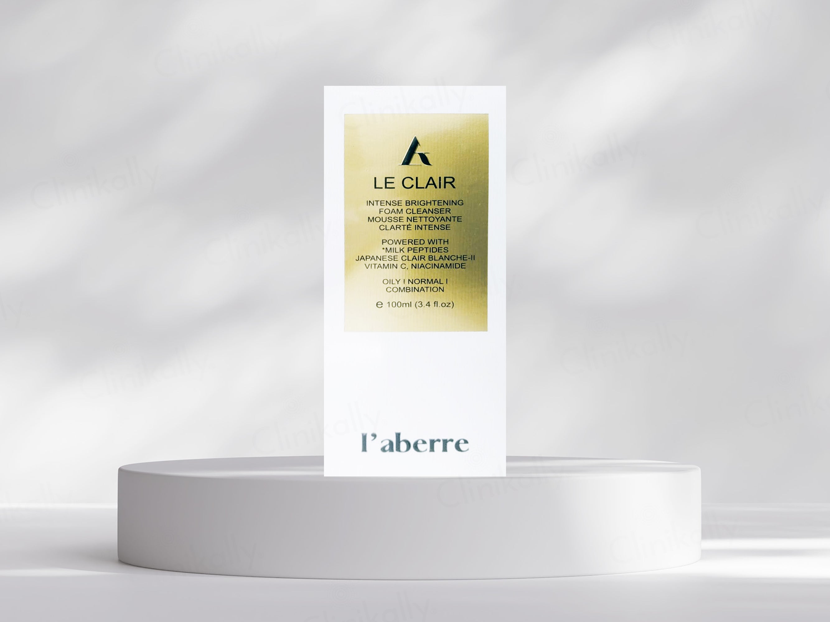 L'aberre Le Clair Intense Brightening Foam Cleanser is a skincare product designed to gently cleanse, brighten, and refine skin texture with a blend of Niacinamide, Vitamin C, and Licorice Extract. Enriched with Aloe Vera and Glycerin, it removes impurities, evens skin tone, and hydrates without irritation for a radiant complexion. This mild foam cleanser, suitable for daily use on all skin types, delivers visible brightening benefits over time.