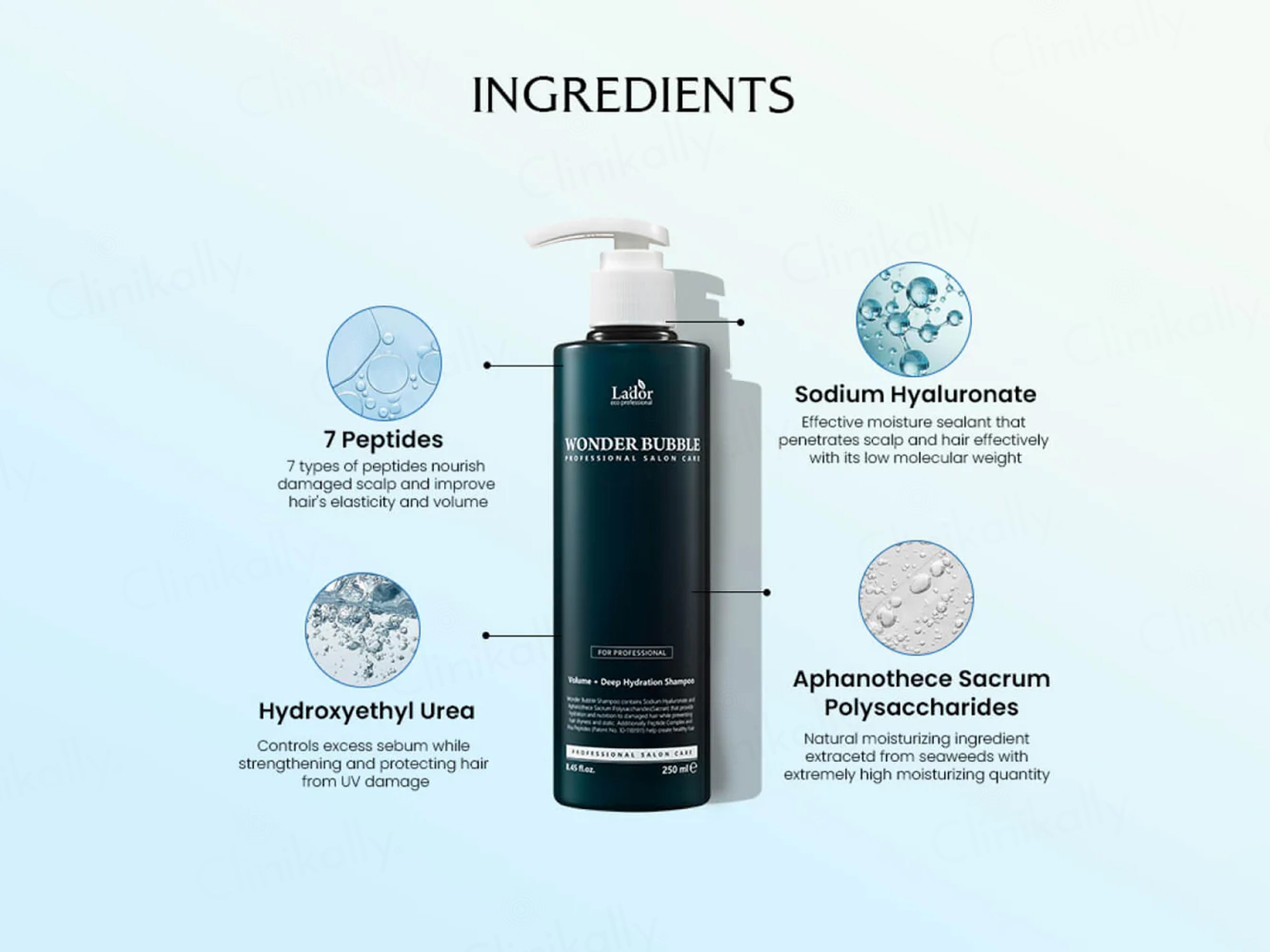 Lador Wonder Bubble Volume + Deep Hydration Shampoo is a volumizing and moisturizing shampoo designed for all hair types, especially flat or dry hair. Infused with hydrolyzed keratin, silk, and collagen, it deeply hydrates while adding volume and elasticity for fuller, bouncier hair. The rich, creamy foam gently cleanses without stripping moisture, leaving hair soft, shiny, and manageable. It also helps repair damaged hair with nourishing peptides and amino acids.