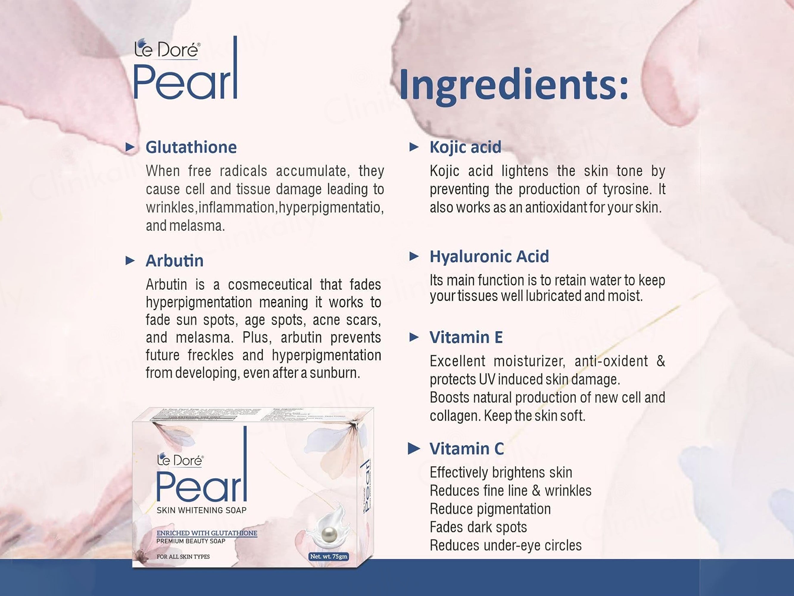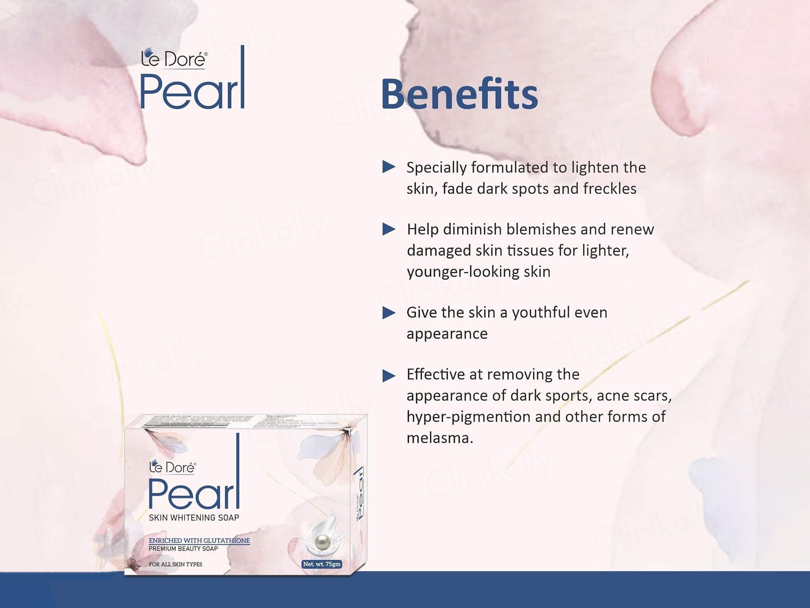 - Apply Le Dore Pearl Skin Whitening Premium Beauty Soap on wet skin, gently massage until a rich lather forms, leave for a few seconds, and rinse thoroughly. Use twice daily for best results.