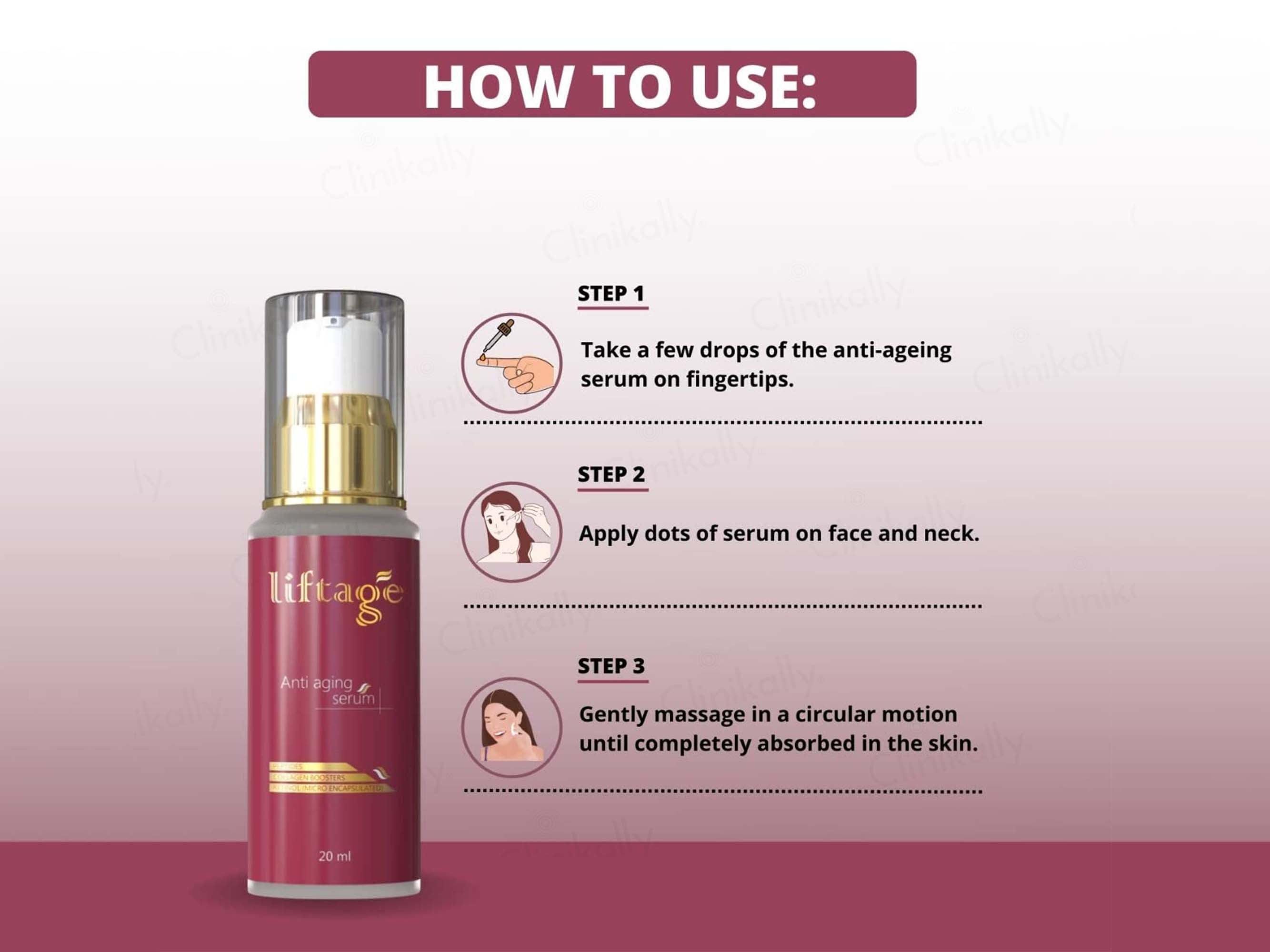 For best results, apply the serum twice daily on clean, dry skin.