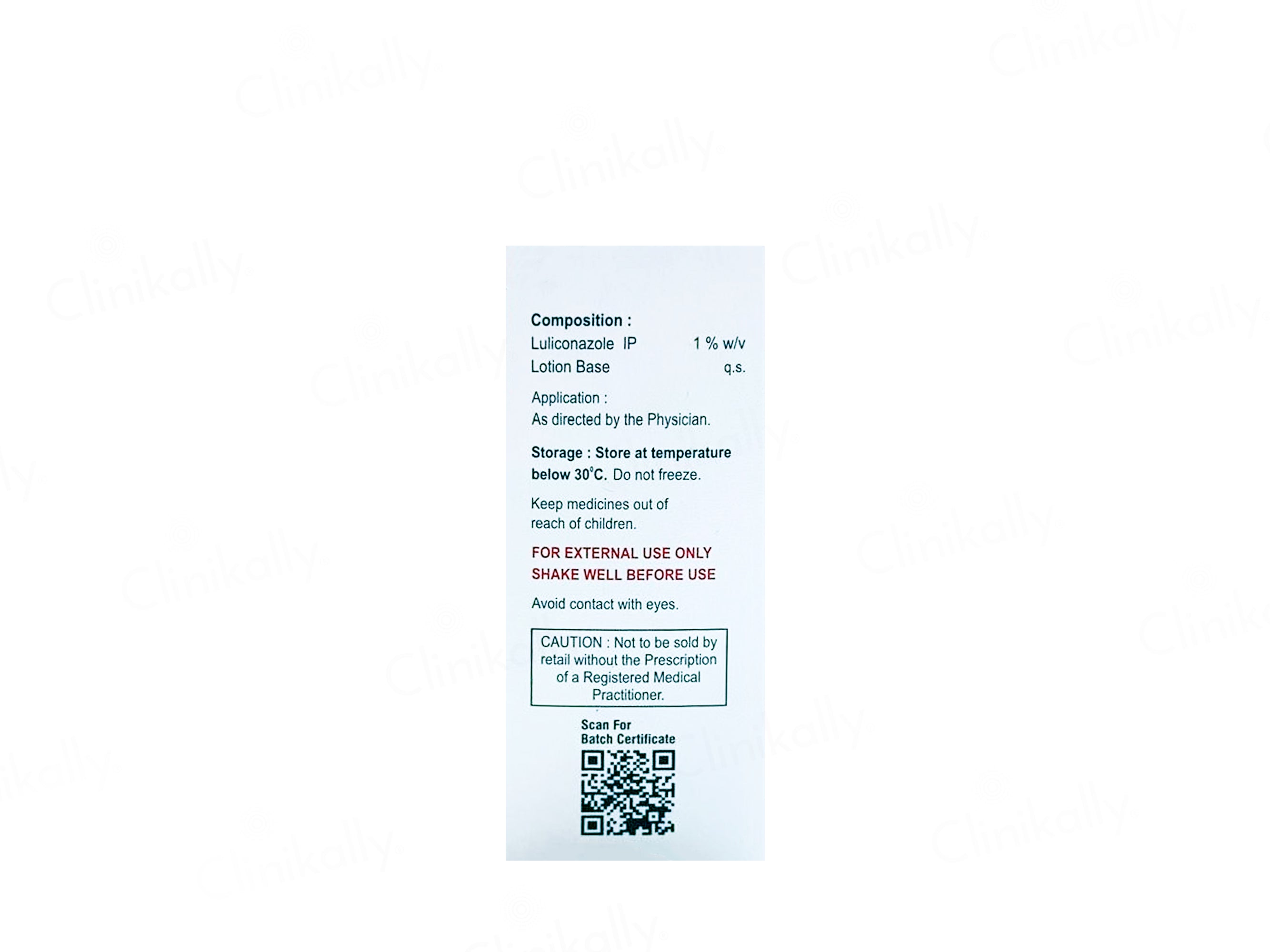 Luliconaz Lotion is an antifungal medicine used for the treatment of fungal skin infections such as ringworm, athlete’s foot, and jock itch. It works by inhibiting the growth of fungi, thereby relieving symptoms like itching, redness, scaling, and irritation. Its once-daily application ensures convenience and effective management of infections, while reducing the risk of recurrence.