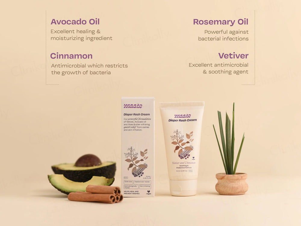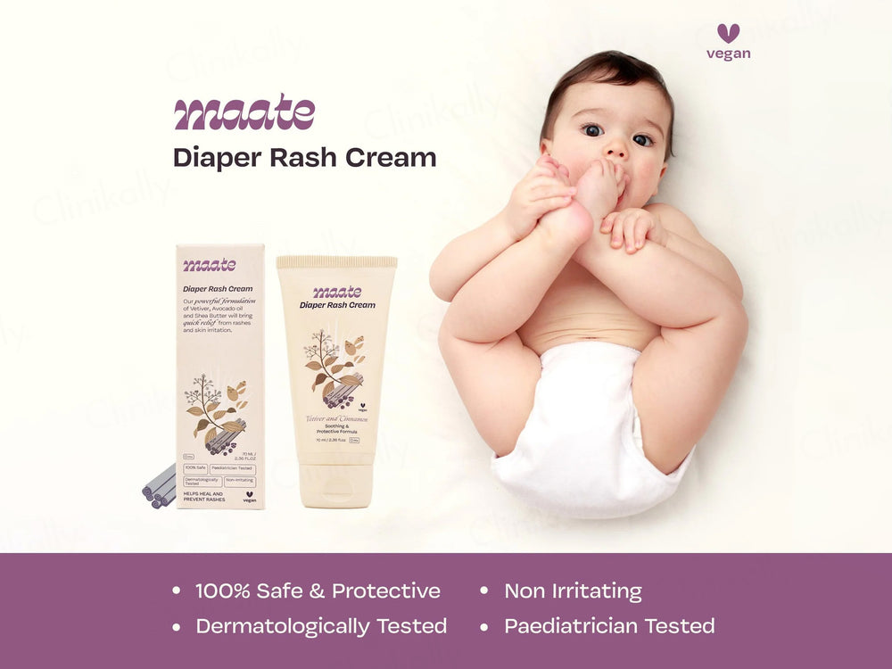 Maate Diaper Rash Cream is used to soothe, heal, and prevent diaper rashes in babies.