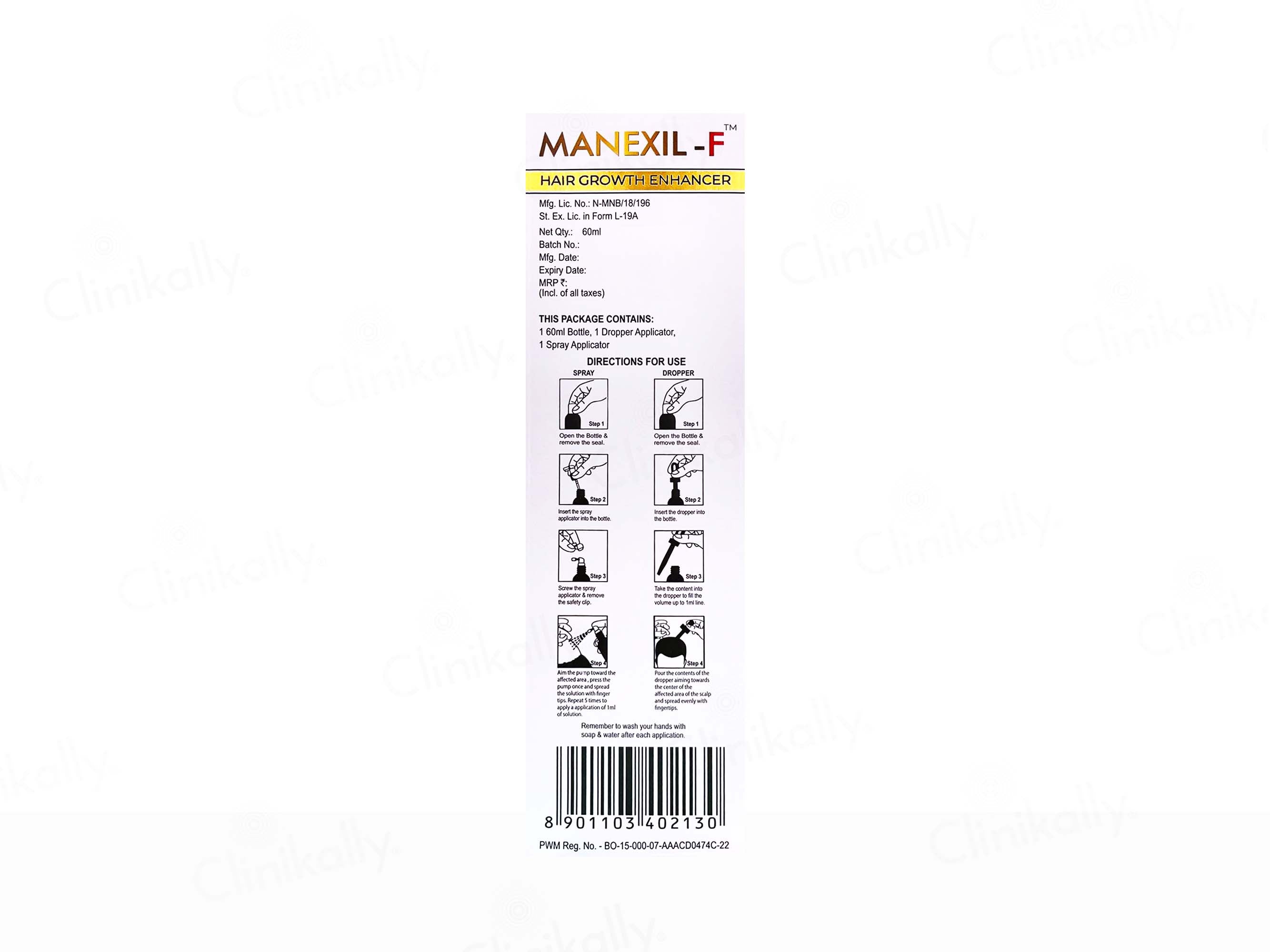 Manexil-F Topical Solution is a trusted remedy for hair loss and baldness. Featuring Minoxidil and Finasteride, it effectively promotes hair regrowth, especially in men suffering from male pattern baldness. This easy-to-apply solution revitalizes hair follicles, increasing hair density and thickness. Manexil-F Topical Solution is a reliable choice for regaining a fuller, more youthful head of hair and boosting self-confidence.