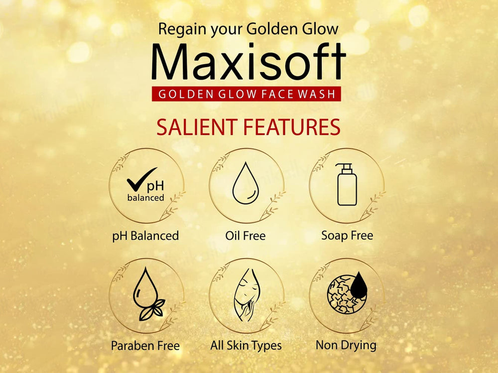 Maxisoft pH Balanced Golden Glow Face Wash is a rejuvenating cleanser designed to enhance your skin's natural radiance. With a balanced pH of 5.5, this face wash gently removes impurities, excess oil, and makeup while promoting a brighter complexion. Enriched with natural extracts and brightening agents, it helps to even out skin tone and reduce dullness, leaving your skin feeling refreshed and revitalized. Suitable for all skin types, Maxisoft Golden Glow Face Wash provides a luminous glow with every wash.