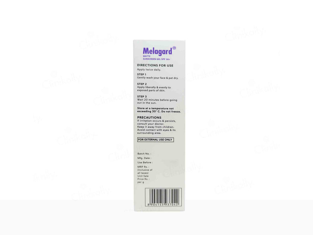 Melagard Matte Sunscreen Gel SPF 30+ PA+++ protects the skin from sun damage, prevents sunburns, and reduces the risk of skin cancer.