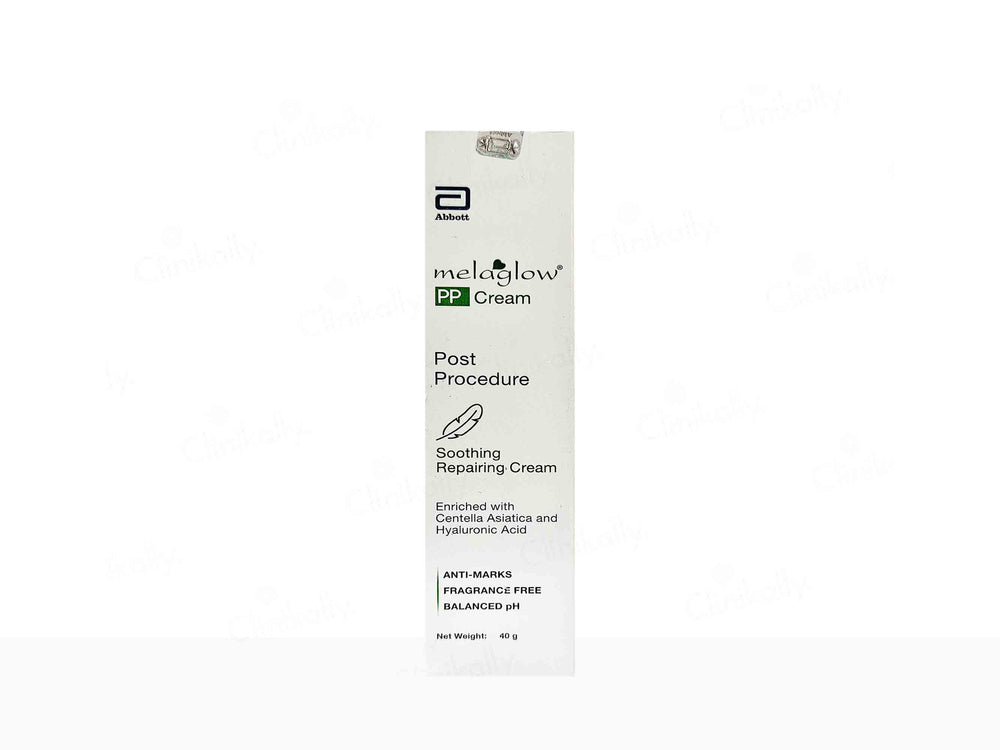 Melaglow PP Cream is a post-procedure soothing and repairing cream formulated to calm irritated skin and accelerate recovery after dermatological treatments. It is enriched with Centella Asiatica (Brahmi Extract), Hyaluronic Acid, Niacinamide, and Shea Butter, which work together to hydrate, soothe, and restore the skin’s protective barrier. The cream also includes Bisabolol, Tocopheryl Acetate, and Lanolin to reduce redness, prevent dryness, and support skin regeneration. Its balanced pH, fragrance-free formula makes it ideal for sensitive or post-treatment skin, helping reduce marks while maintaining softness and comfort with every use.