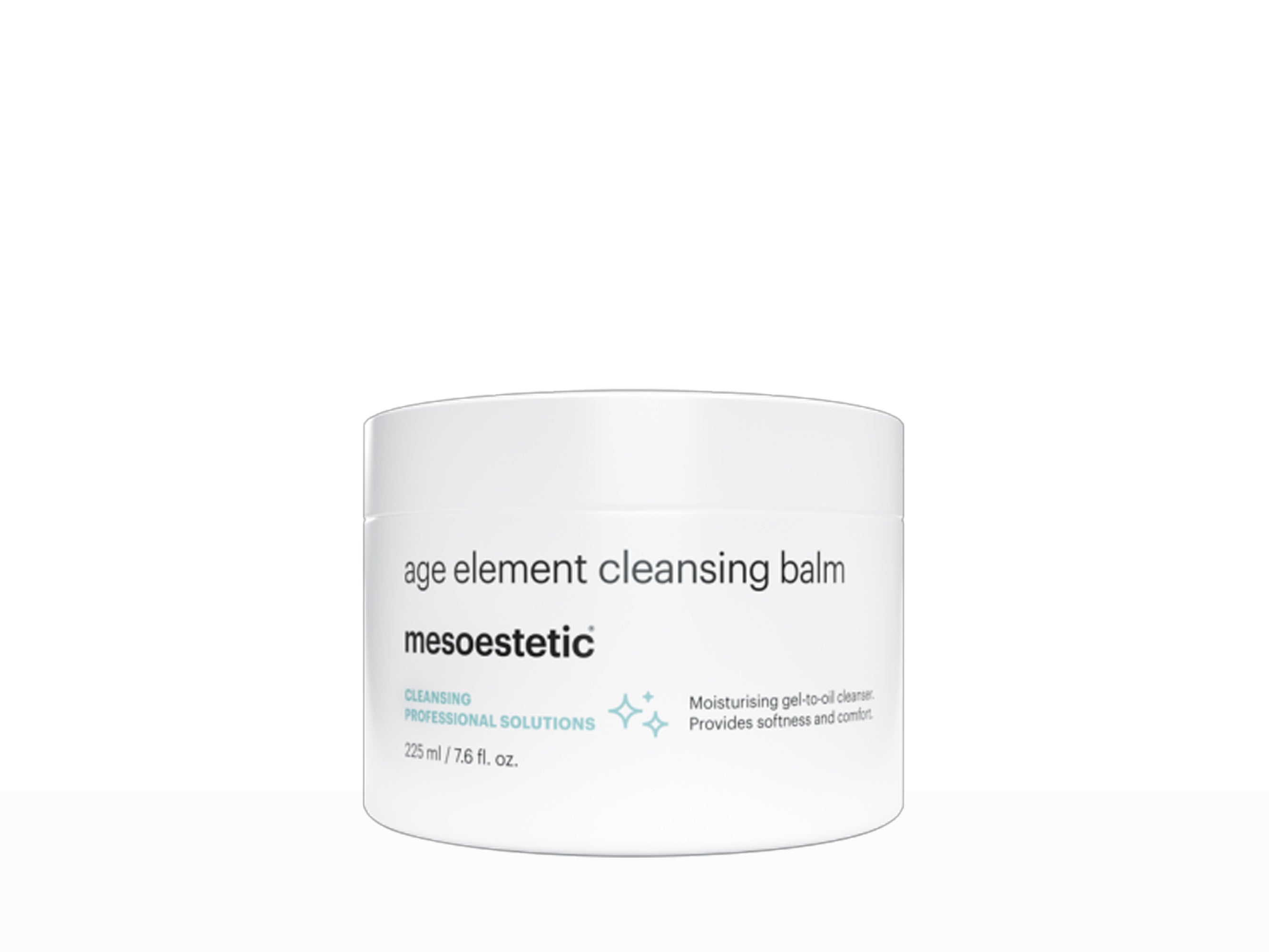 Mesoestetic Age Element Moisturising Gel-To-Oil Cleansing Balm is a transformative cleanser that melts from gel to oil, combining Caprylic/Capric Triglycerides for effortless makeup dissolution and Glycerin for moisture retention. Enriched with Saccharide Isomerate for hydration and sucrose esters for gentle emulsification. Removes impurities while maintaining skin's natural moisture barrier. pH-balanced with Citric Acid/Sodium Citrate. Ideal for all skin types including sensitive.