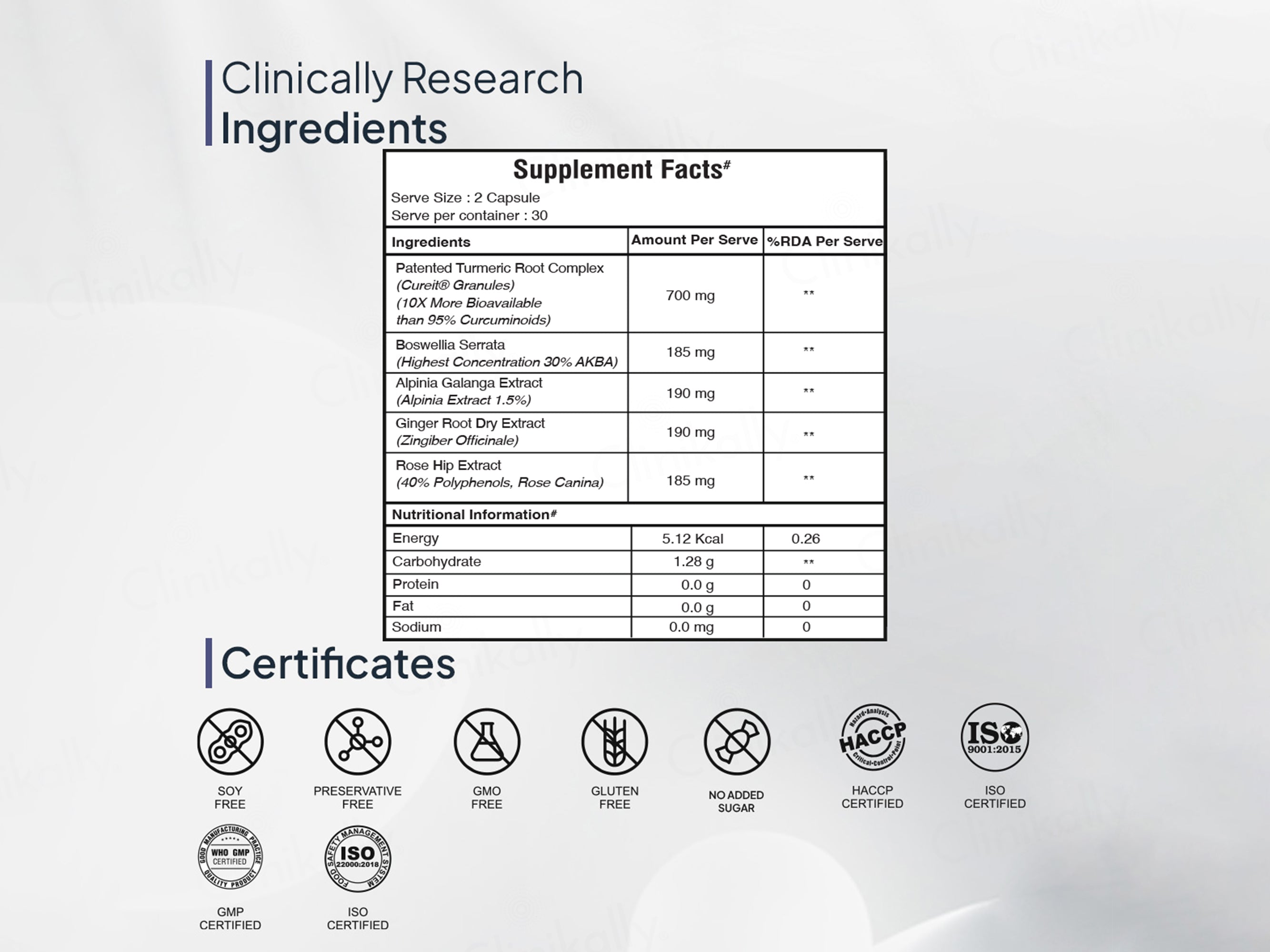 - Boswellia Serrata (Highest Concentration 30% AKBA)