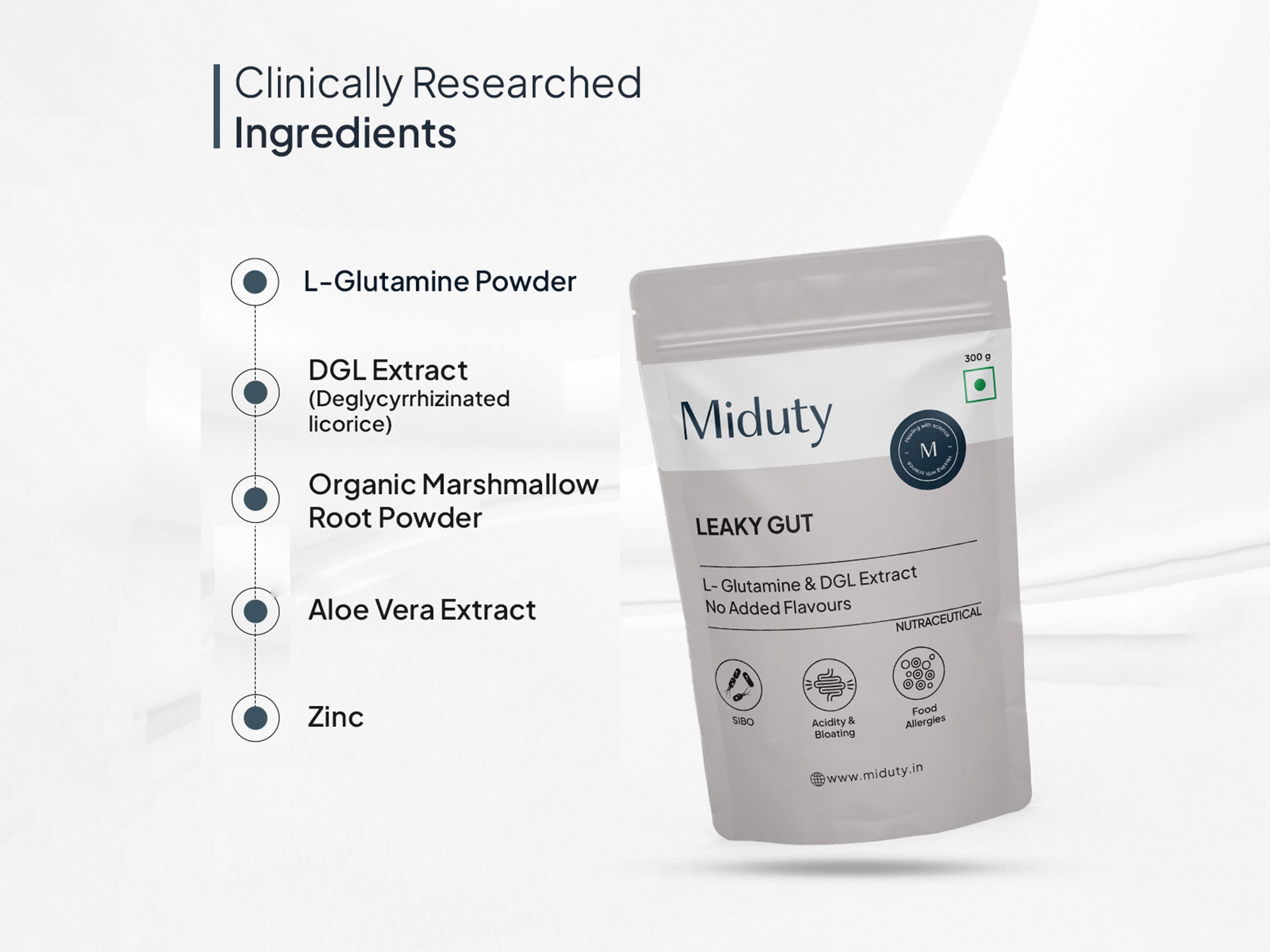 Miduty Leaky Gut L-Glutamine & DGL Extract Powder