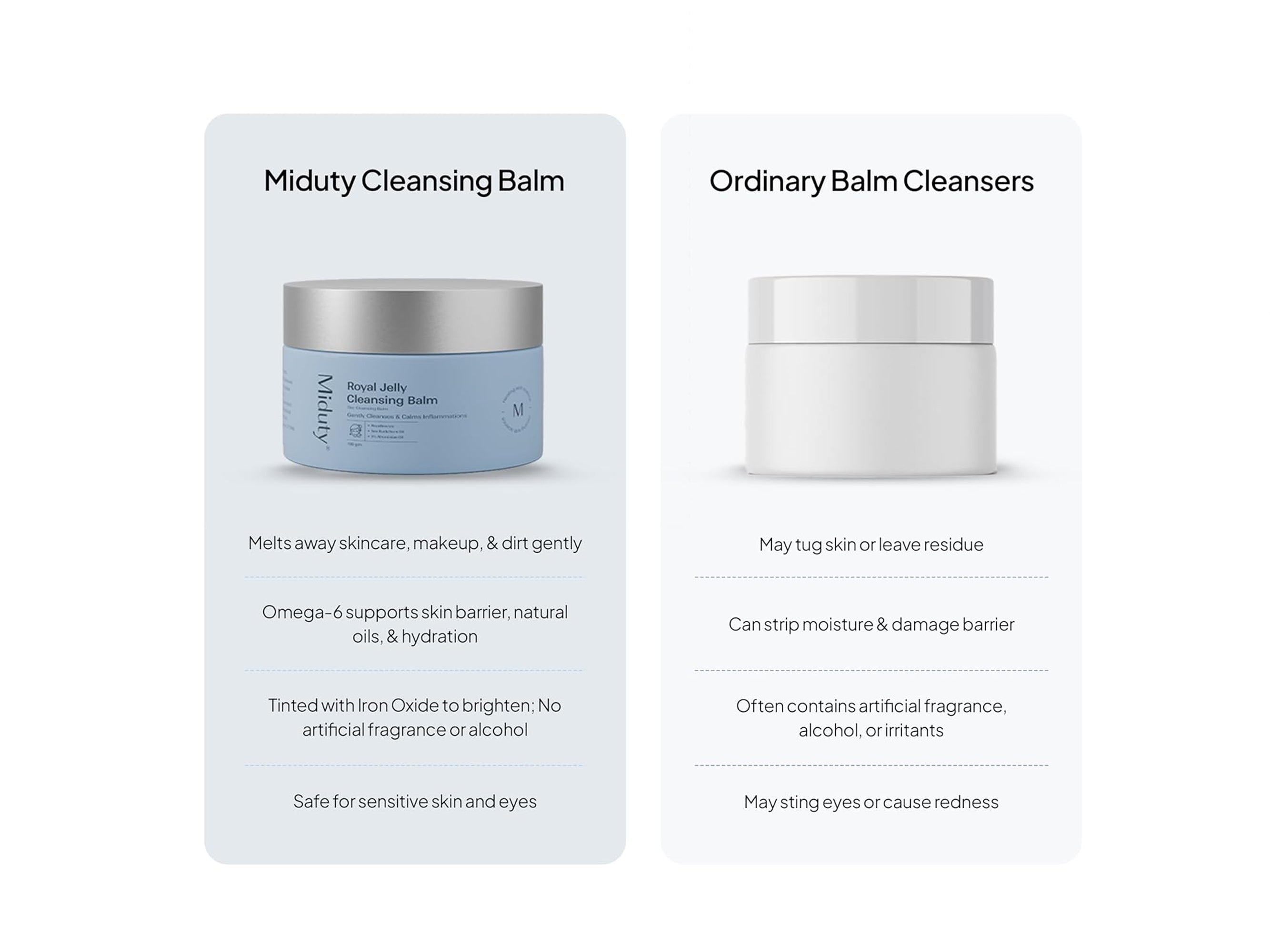Miduty Royal Jelly Cleansing Balm helps hydrate, calm redness, protect from free radicals, and improve overall skin texture while providing a thorough cleanse.
