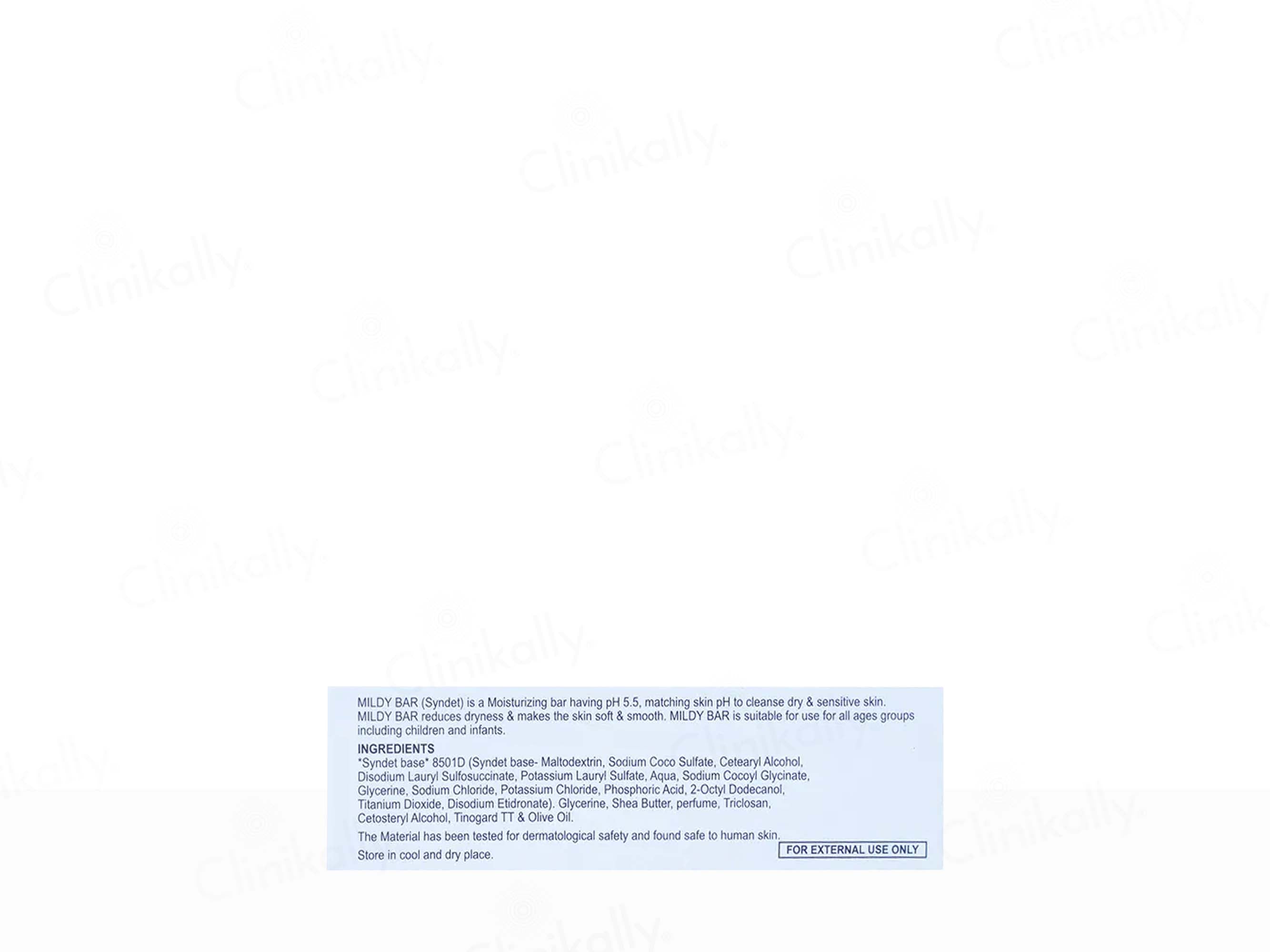 Mildy Bar is a dermatologically tested moisturizing syndet bar with a pH of 5.5, formulated to match your skin’s natural balance. Enriched with glycerine, shea butter, olive oil, and triclosan, it gently cleanses while keeping the skin soft, smooth, and hydrated. Perfect for dry and sensitive skin, this soap-free bar effectively removes impurities without stripping natural moisture. Its paraben-free and colorant-free formula makes it safe for all ages, including children and infants. Experience deep nourishment and daily freshness with Mildy Moisturizing & Cleansing Syndet Bathing Bar.