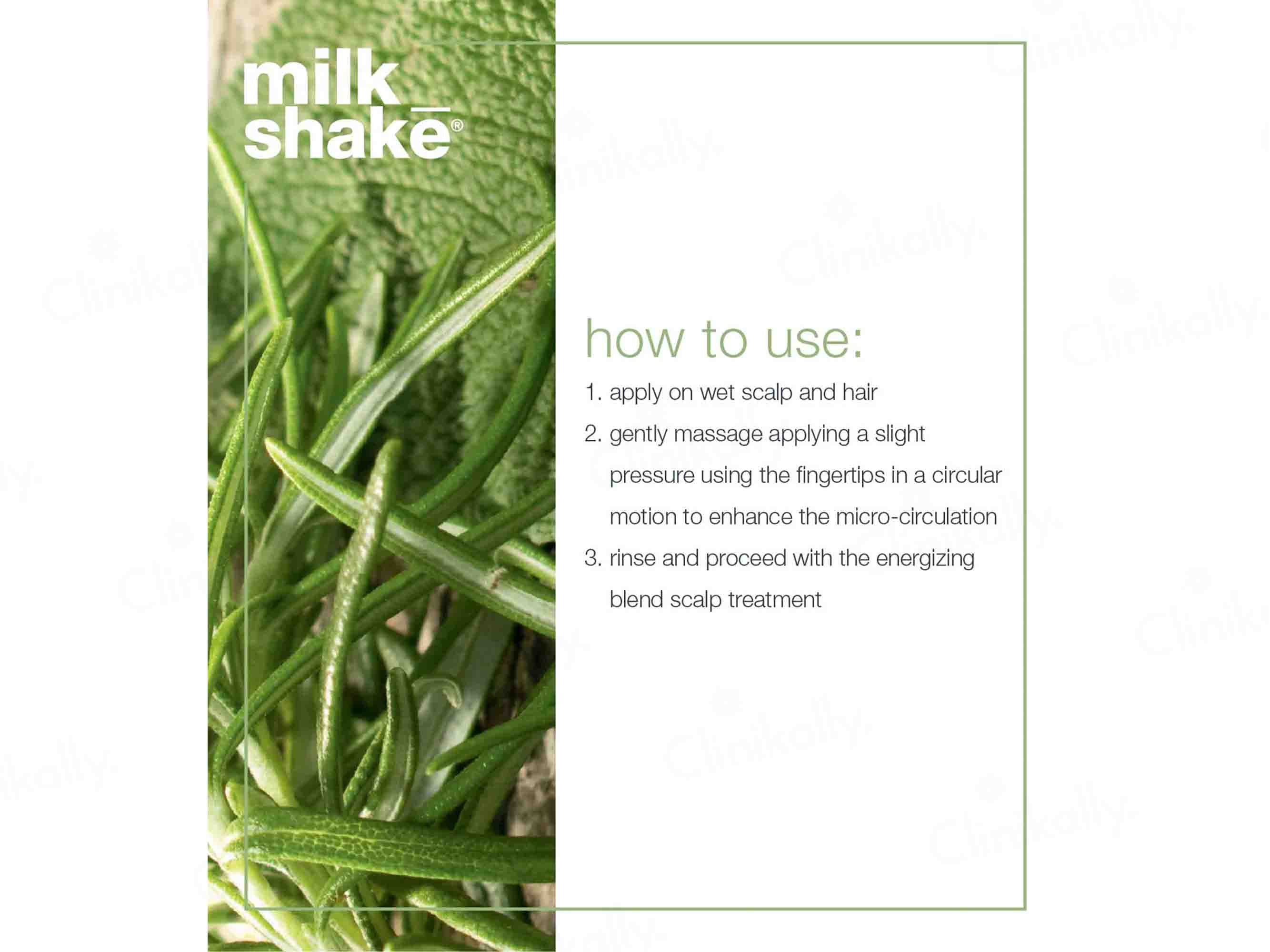 - After shampooing with Milk Shake Energizing Blend Shampoo, apply a generous amount of the conditioner to damp hair.