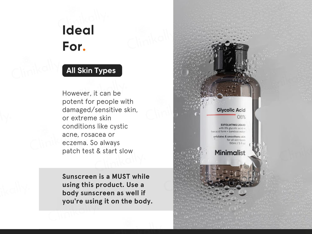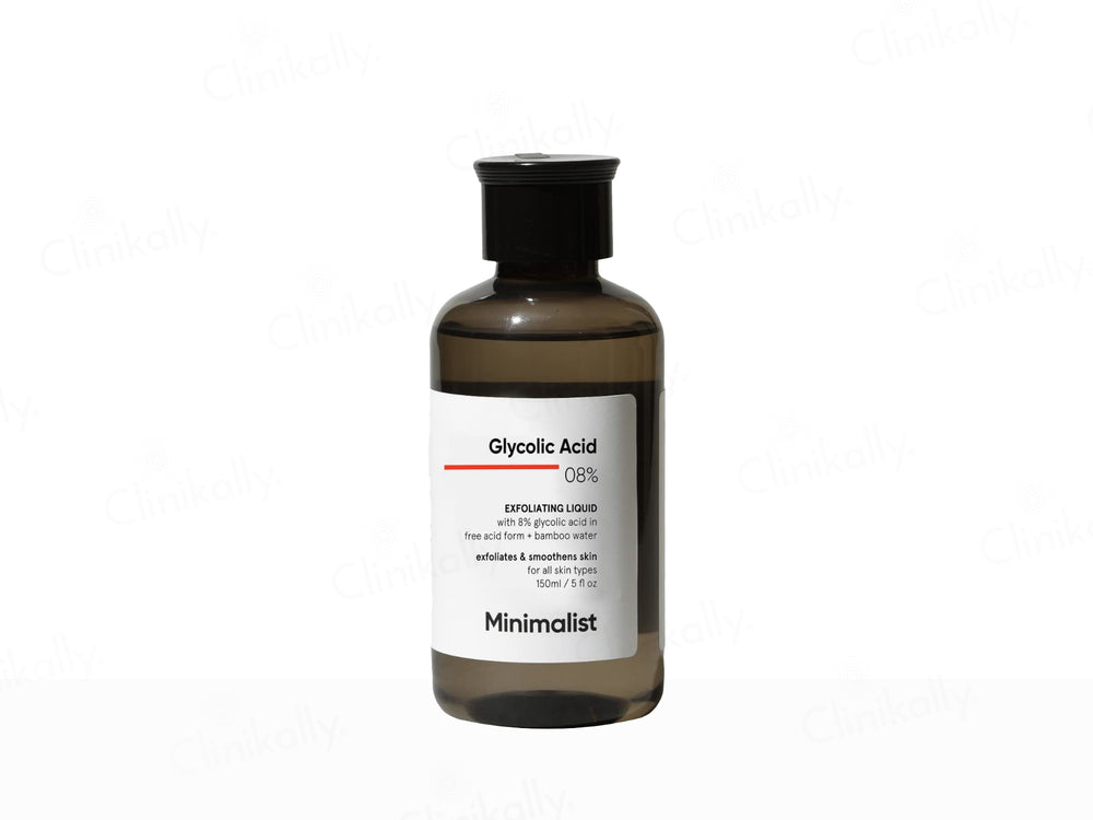 Minimalist 8% Glycolic Acid Exfoliating Liquid is a skincare product designed to exfoliate dead skin cells, unclog pores, and improve skin texture, revealing a brighter, smoother complexion.