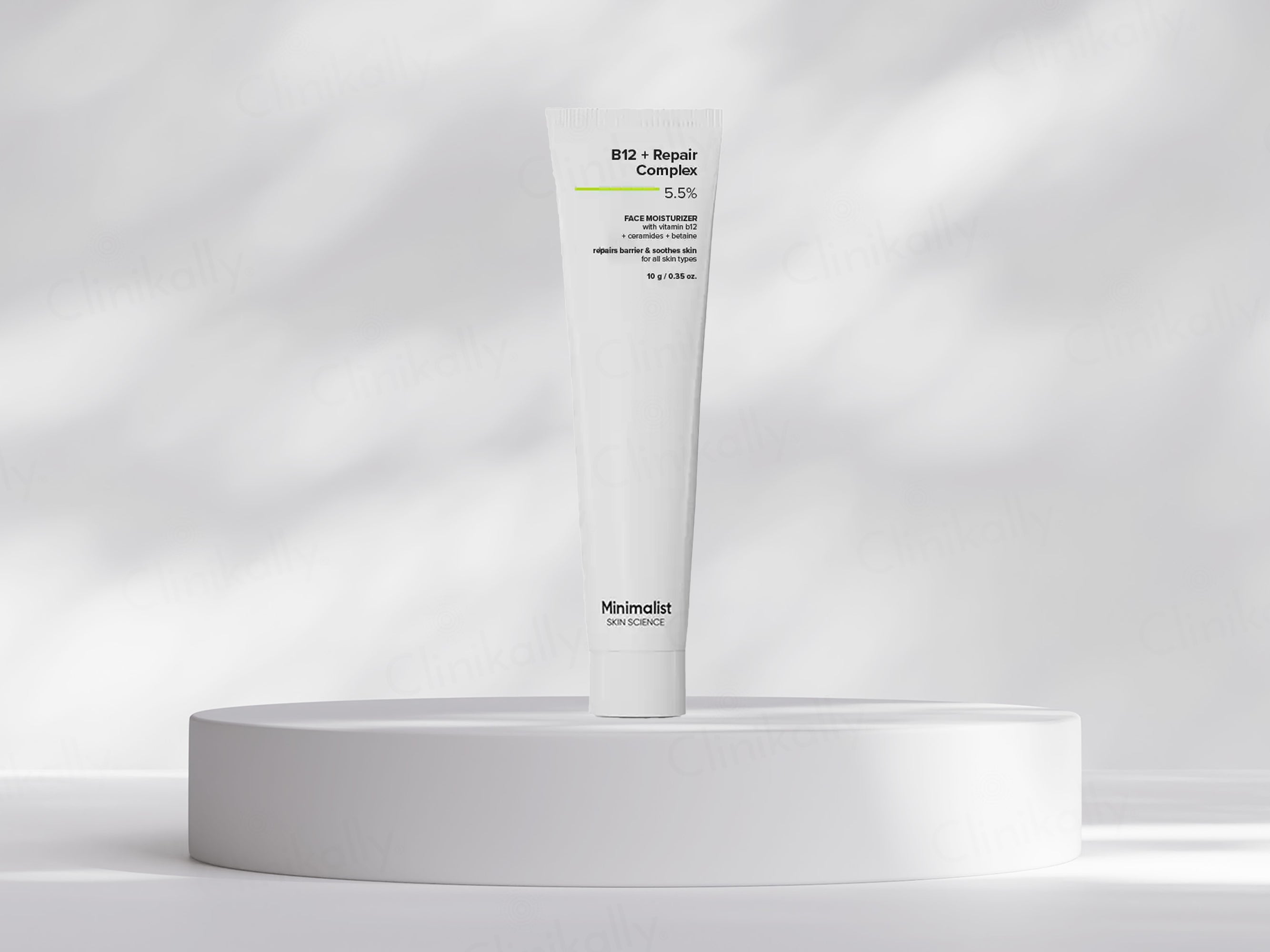 - Use AM & PM after cleansing, toning, and serums. Take sufficient quantity of Minimalist B12 + Repair Complex 5.5% Face Moisturizer and gently massage into face until fully absorbed.